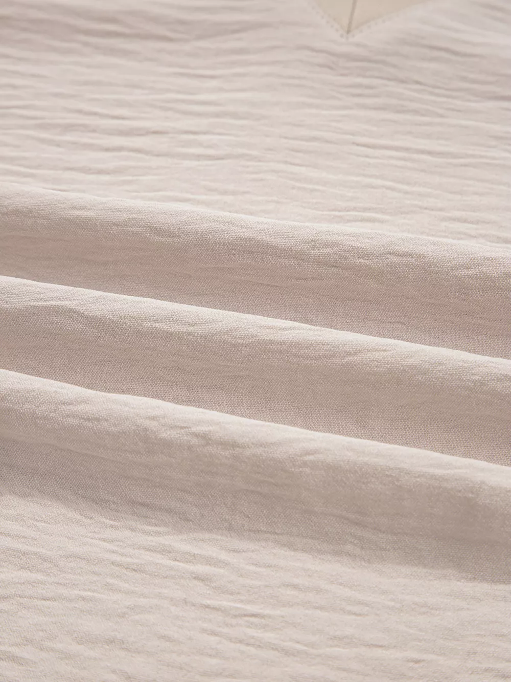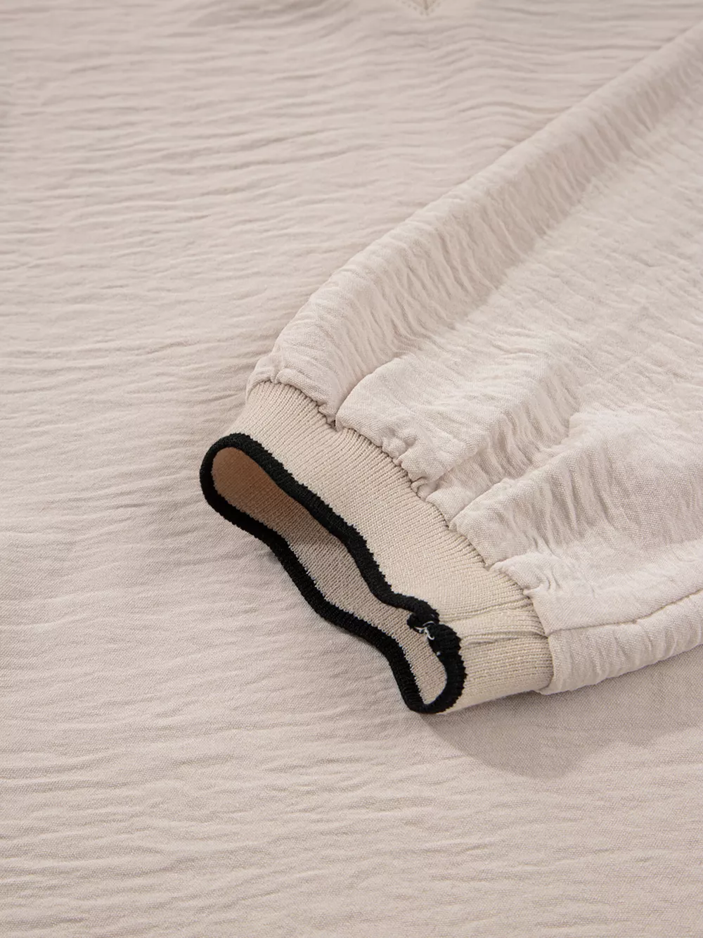 Contrast Scallop Trim V Neck Long Sleeve Blouse