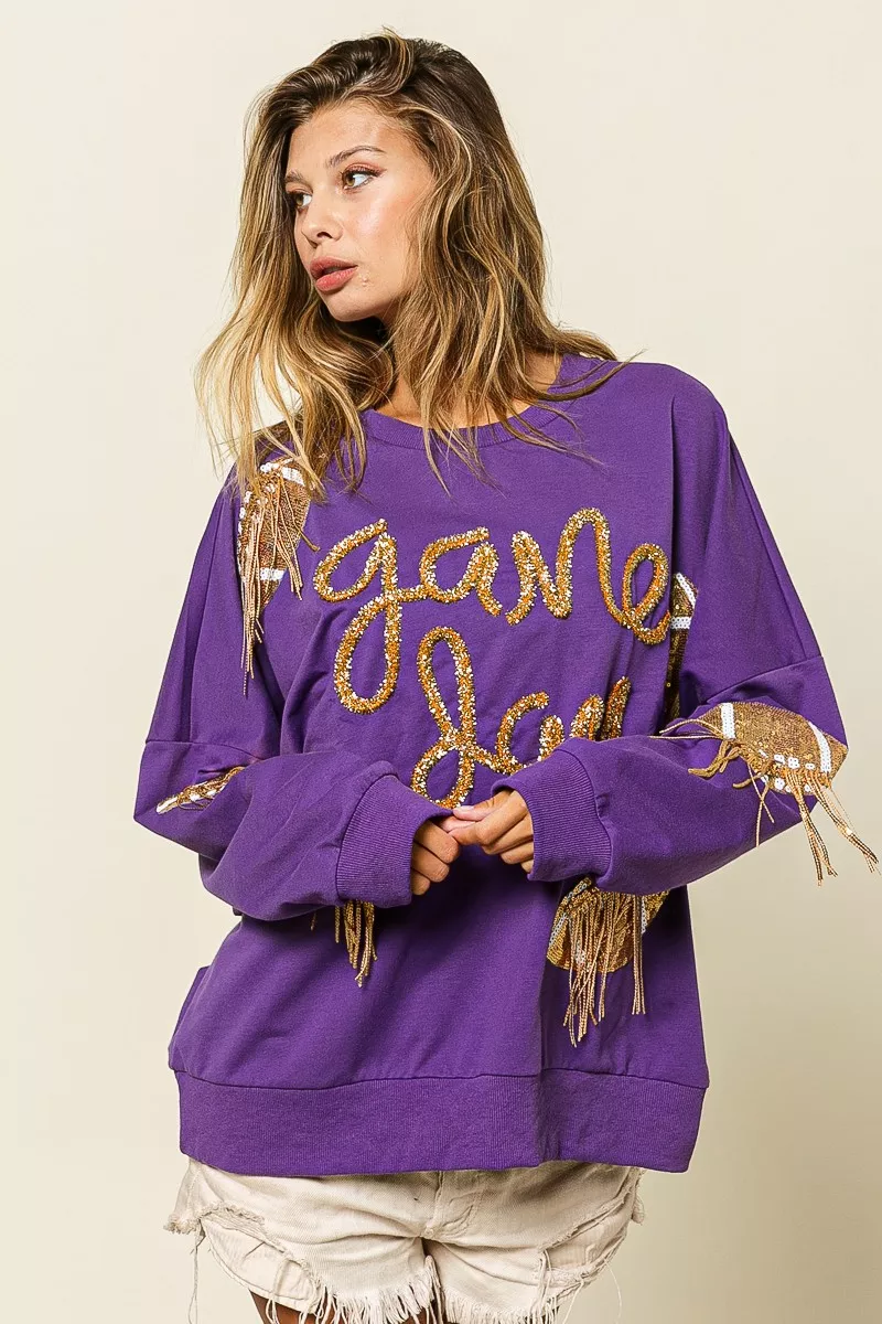 BiBi Sequin Football Patches Game Day Sweatshirt