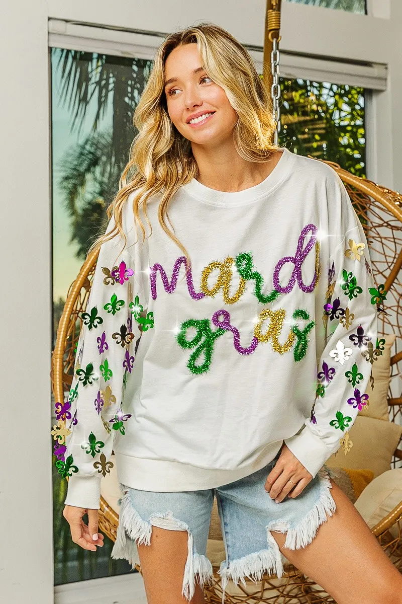 BiBi Fleur De Lis Sleeve Mardi Gras Pullover