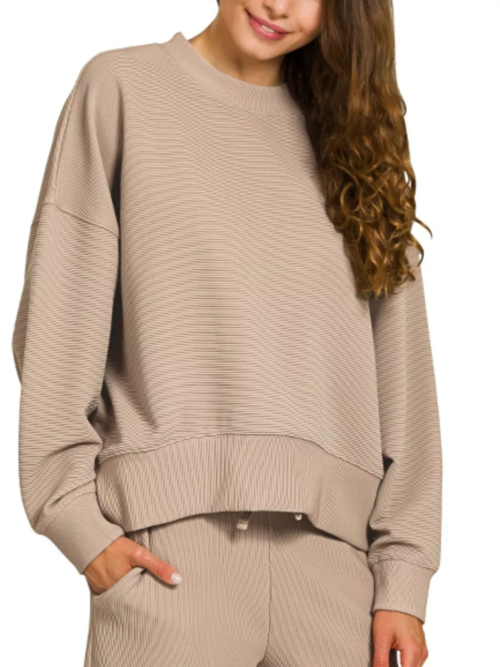 Zenana Ribbed Round Neck Pullover and Drawstring Pants Set
