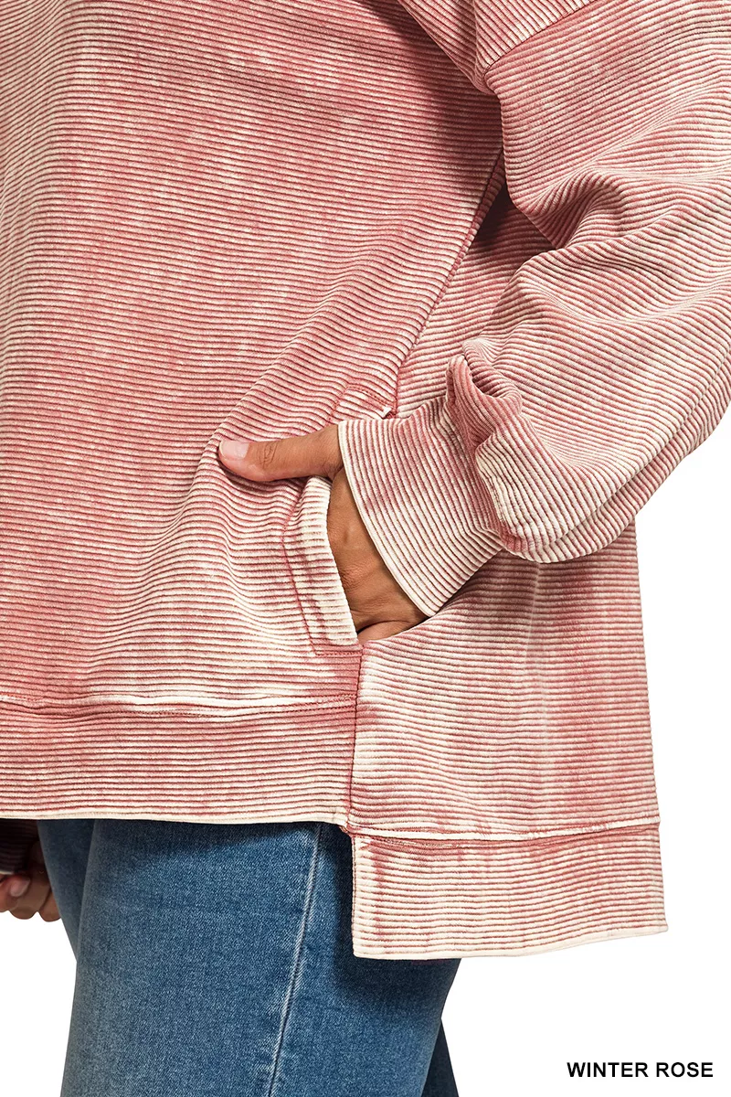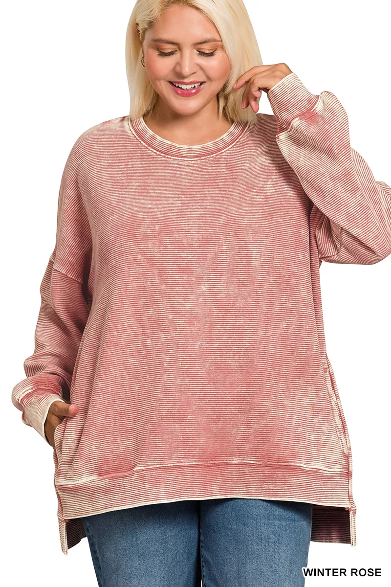 Zenana Full Size Acid Washed Double Ribbed Hi-low Sweatshirt Plus Size