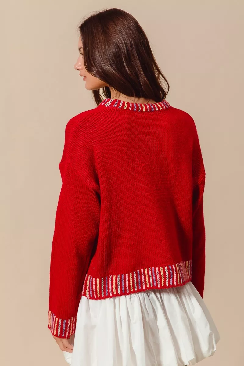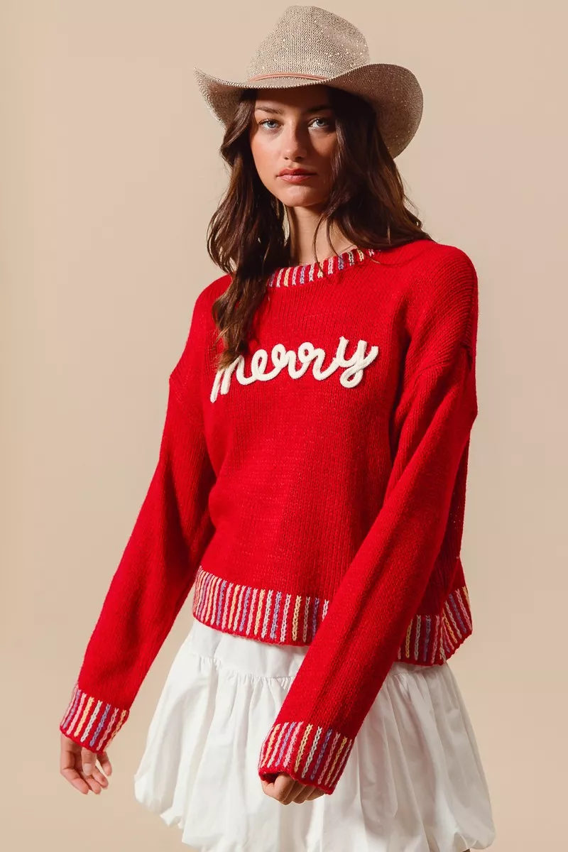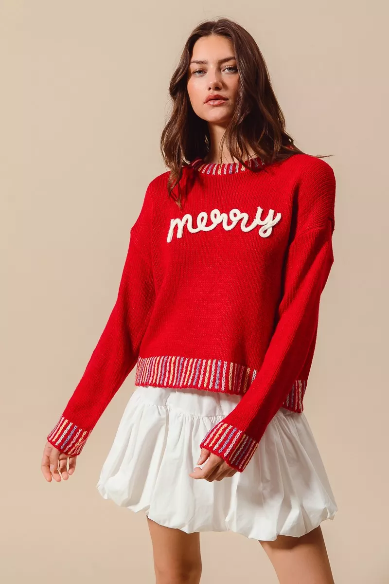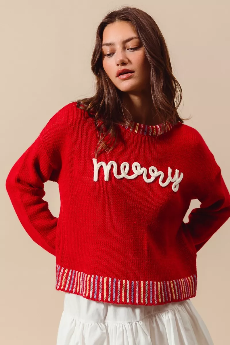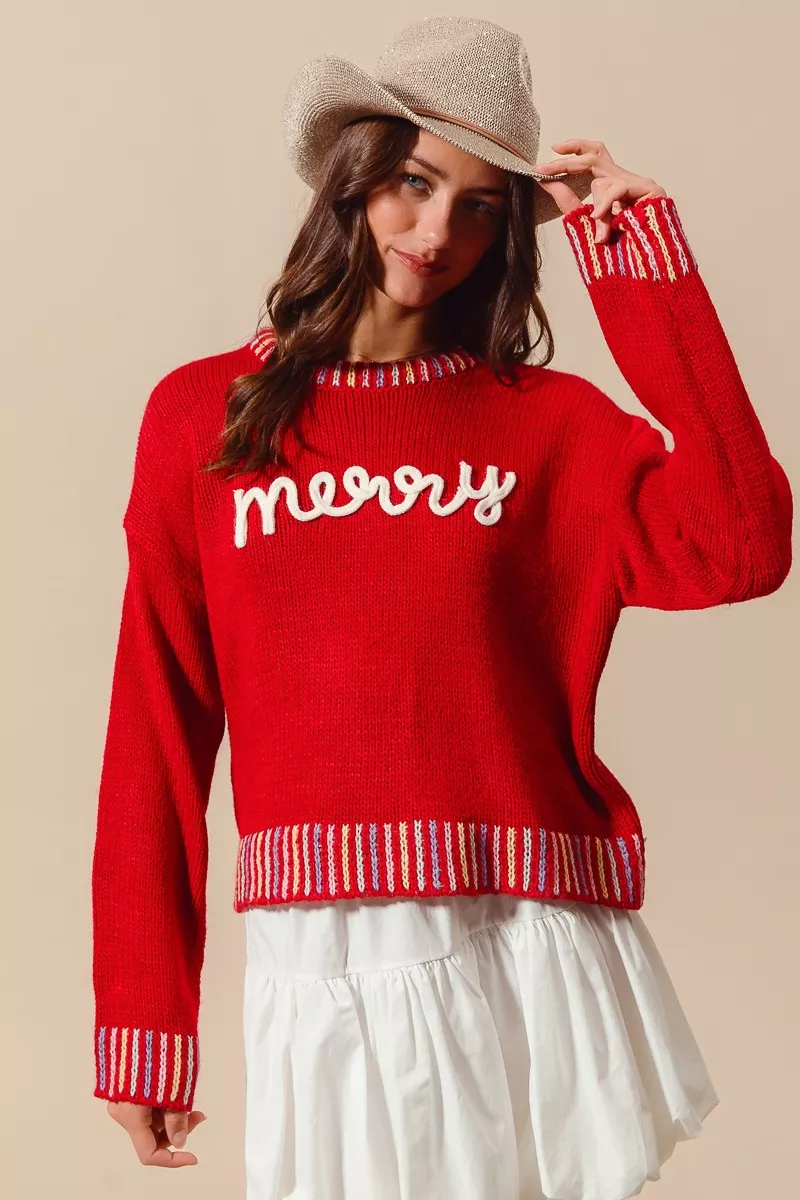 SO ME Merry Lettering Embroidered Christmas Sweater
