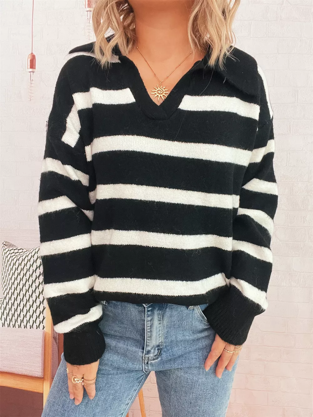 Striped Dropped Shoulder Sweater