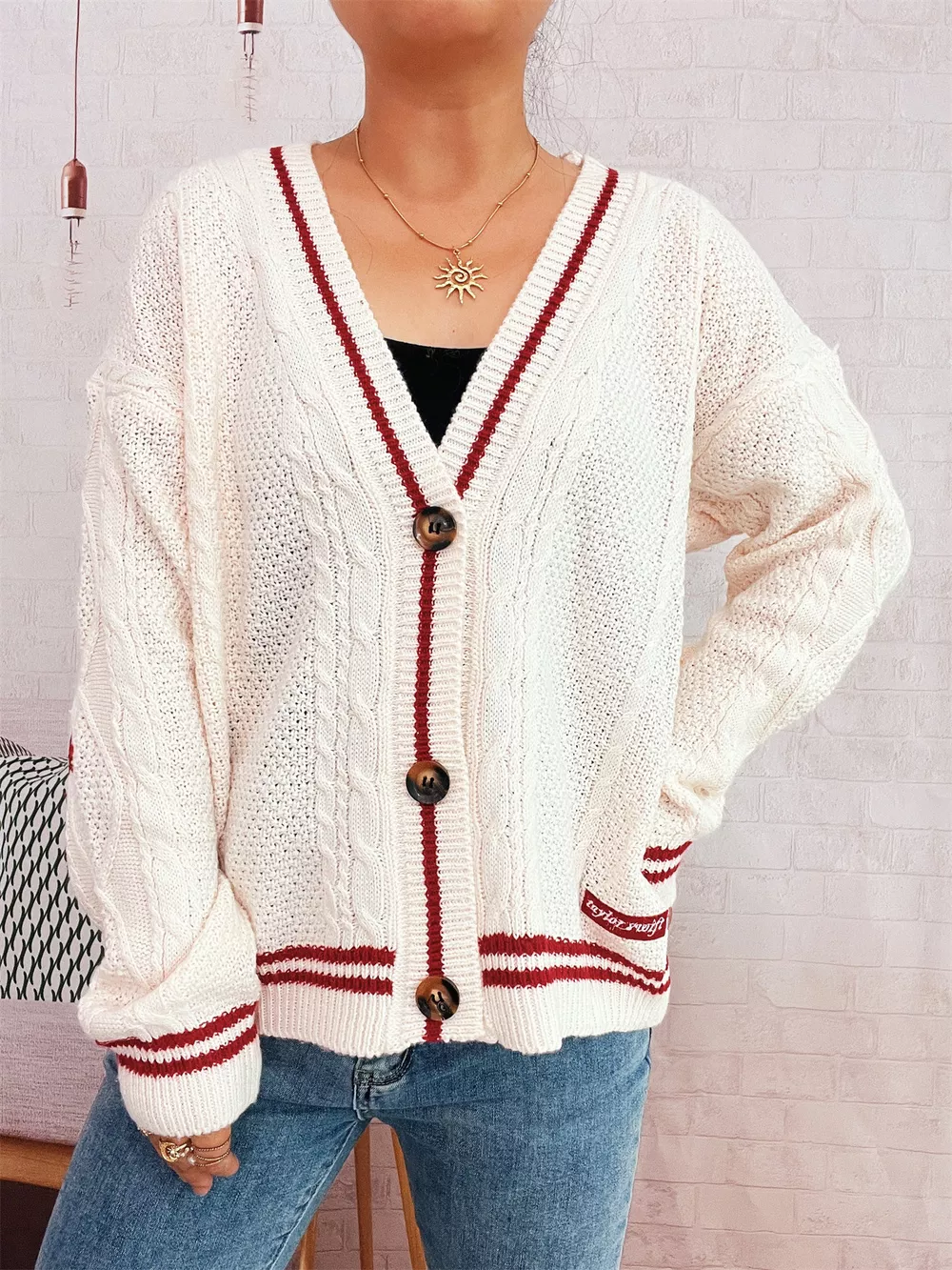 Star Pattern Button-Up Cardigan with Contrast Trim