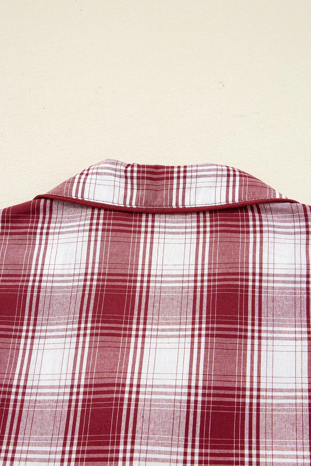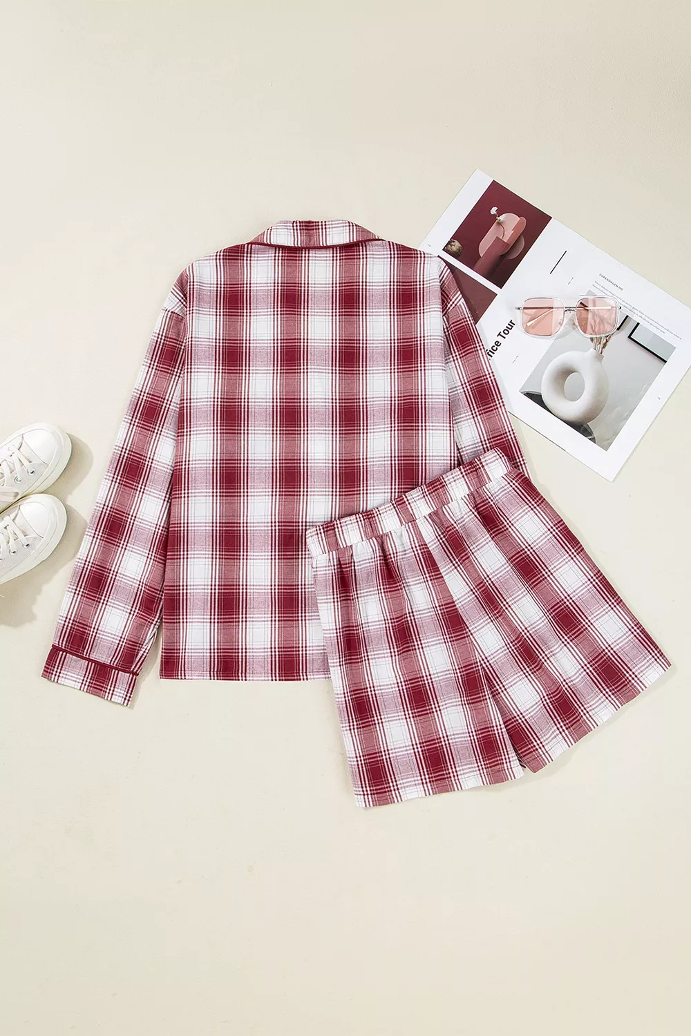 Plaid Long Sleeve Shirt and Drawstring Shorts Lounge Set