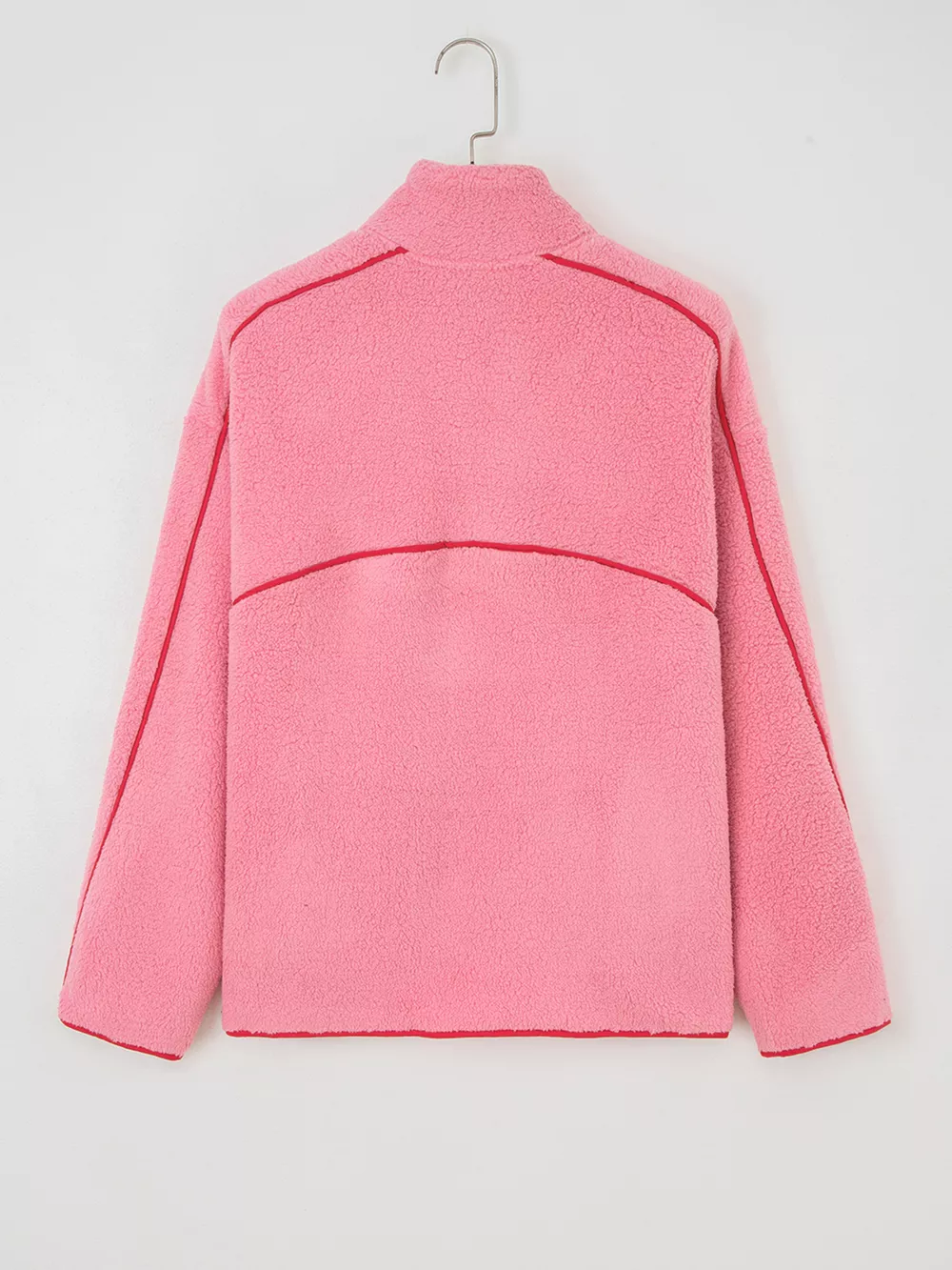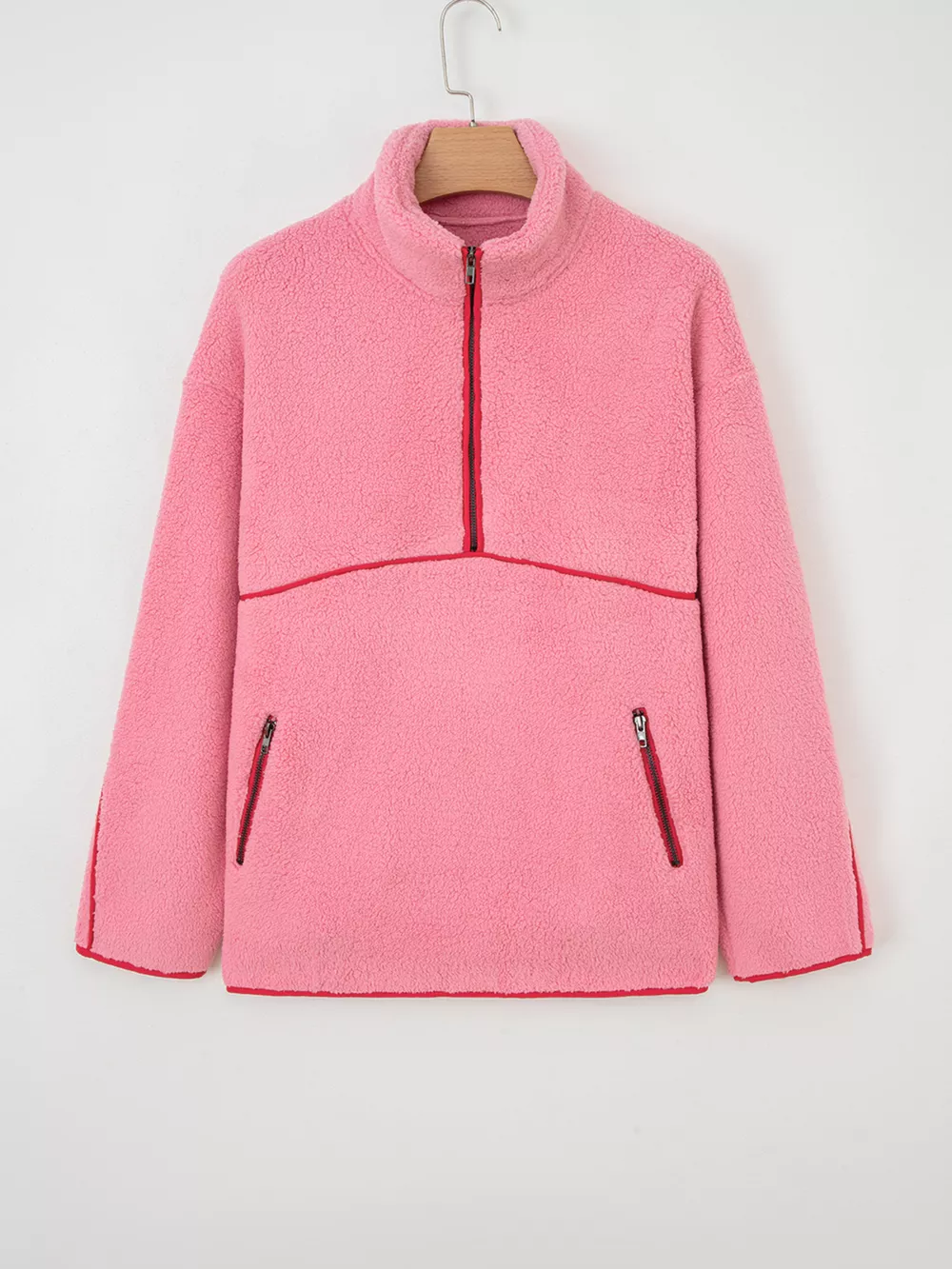 Sherpa Contrast Faux Leather Trim Half Zip Sweatshirt
