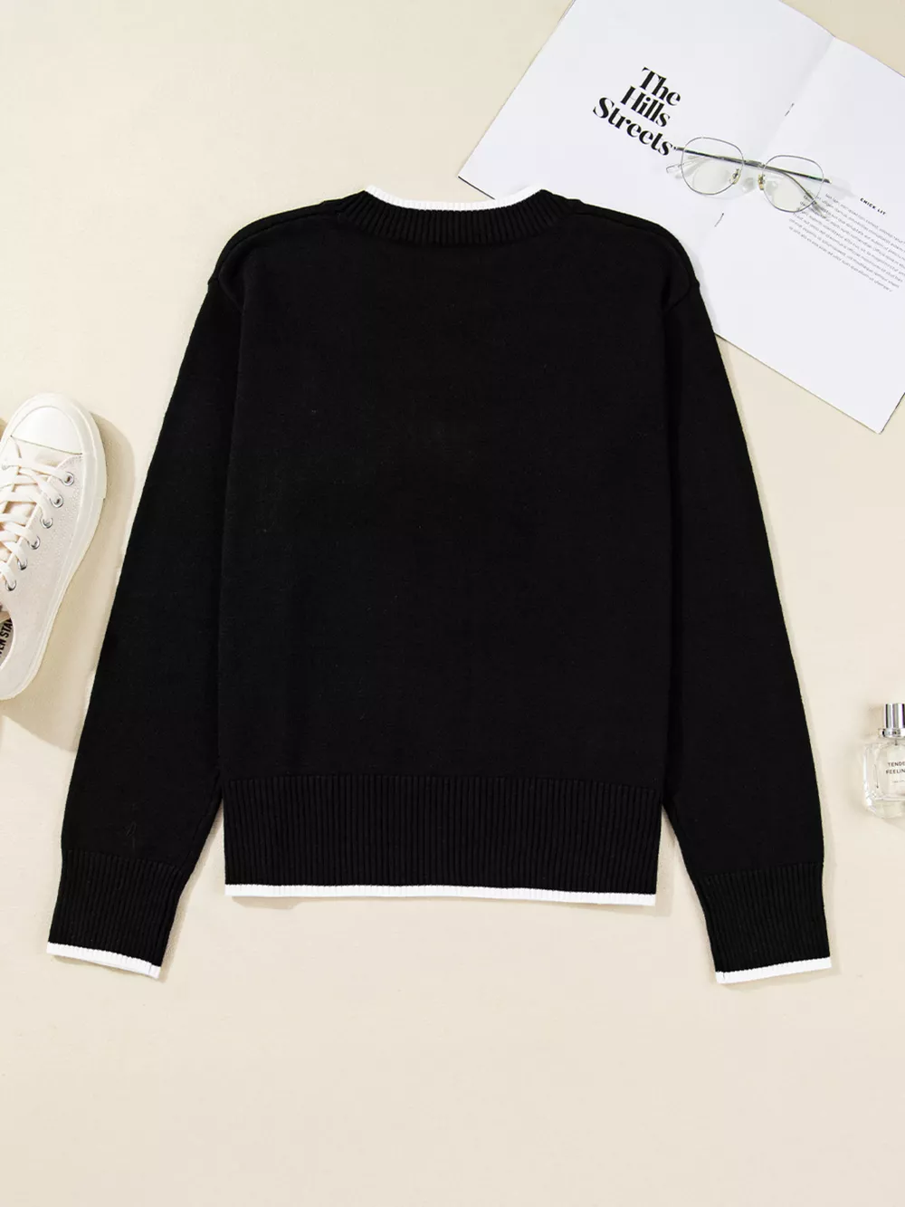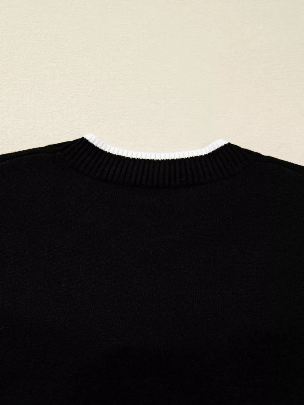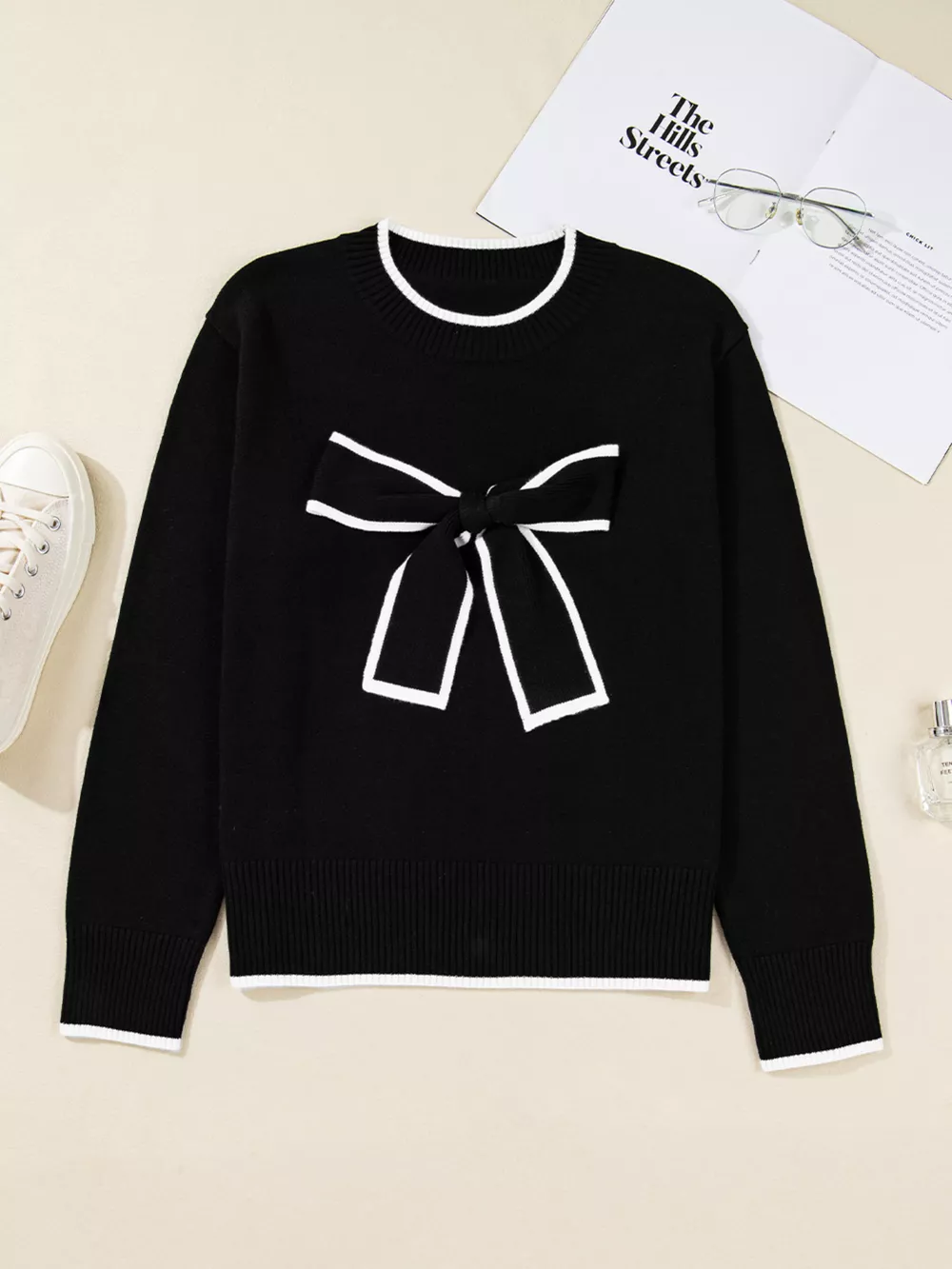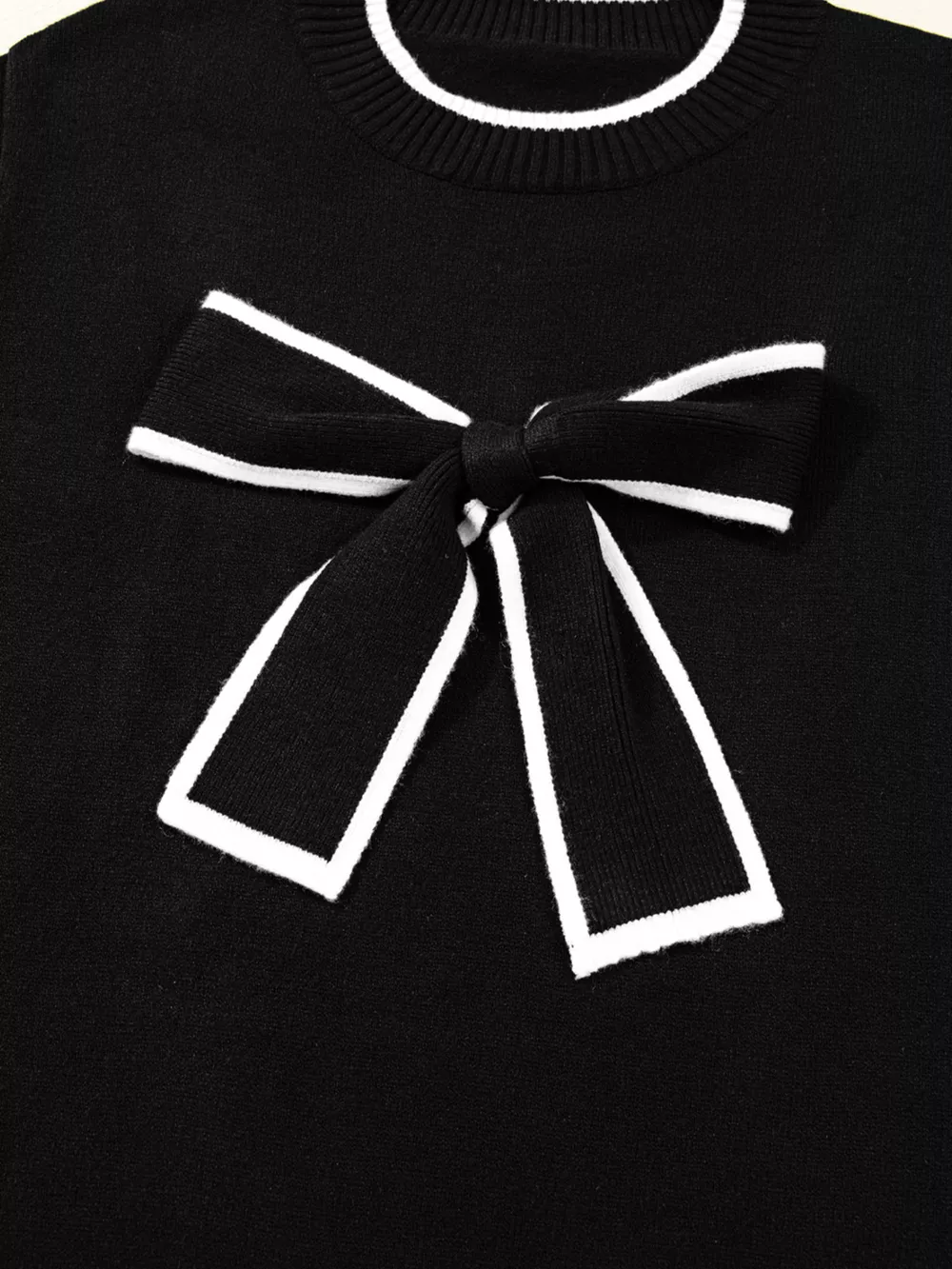 Contrast Trim Bow Accent Holiday Cropped Sweater