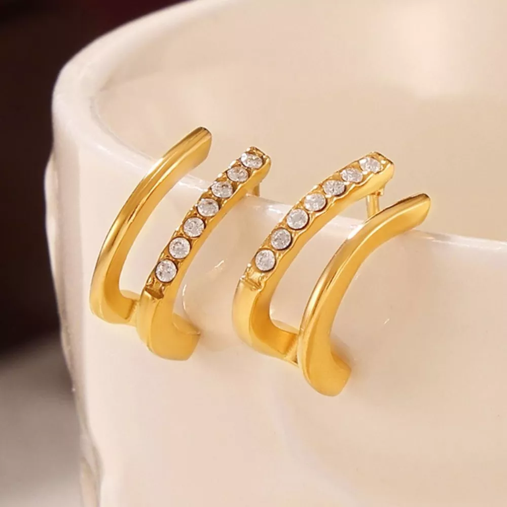 18K Gold-Plated Titanium Steel Rhinestone Earrings