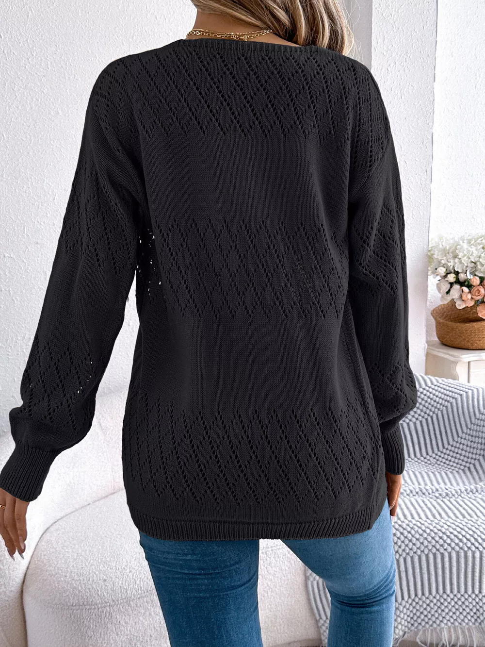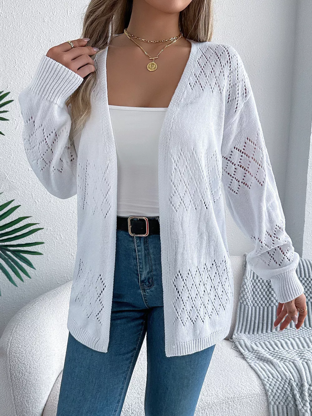 Openwork Open Front Long Sleeve Cardigan