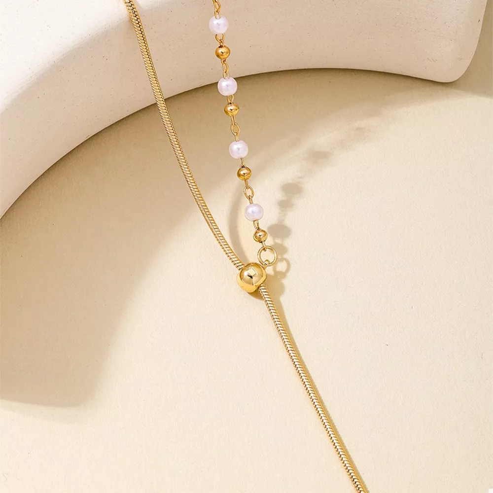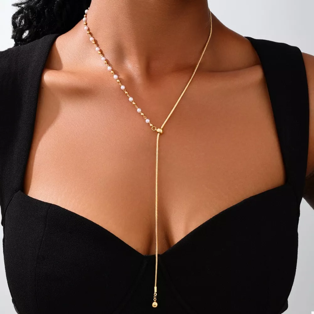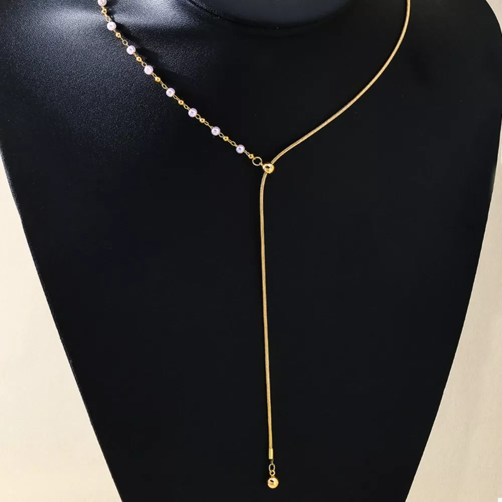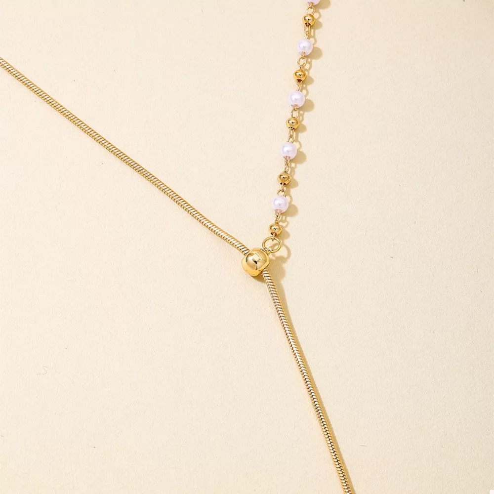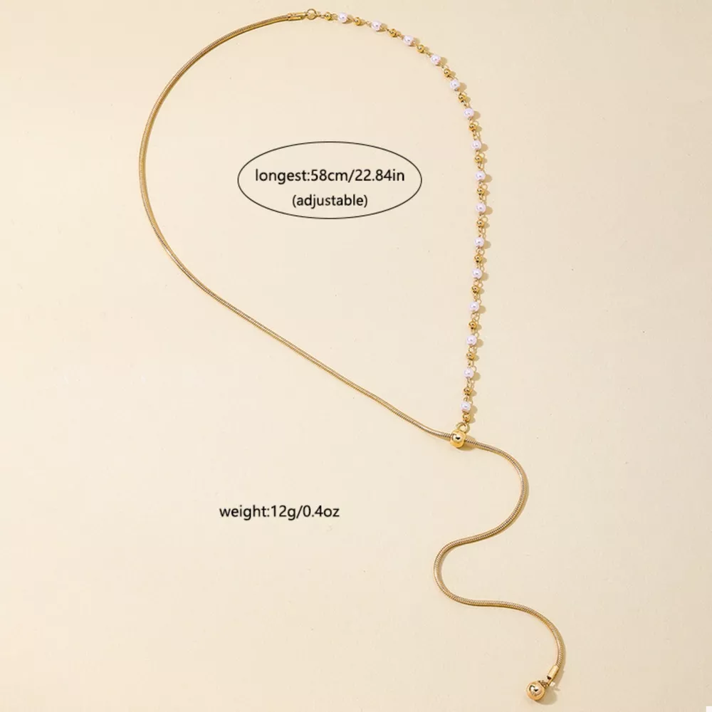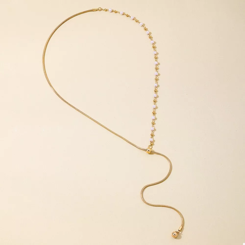 18K Gold-Plated Chain Y-Drop Necklace with Synthetic Pearl Accent