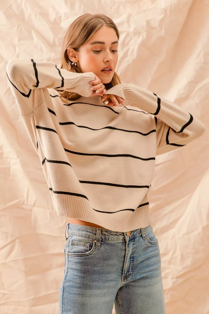SO ME Stripe Crew Neck Basic Essential Sweater