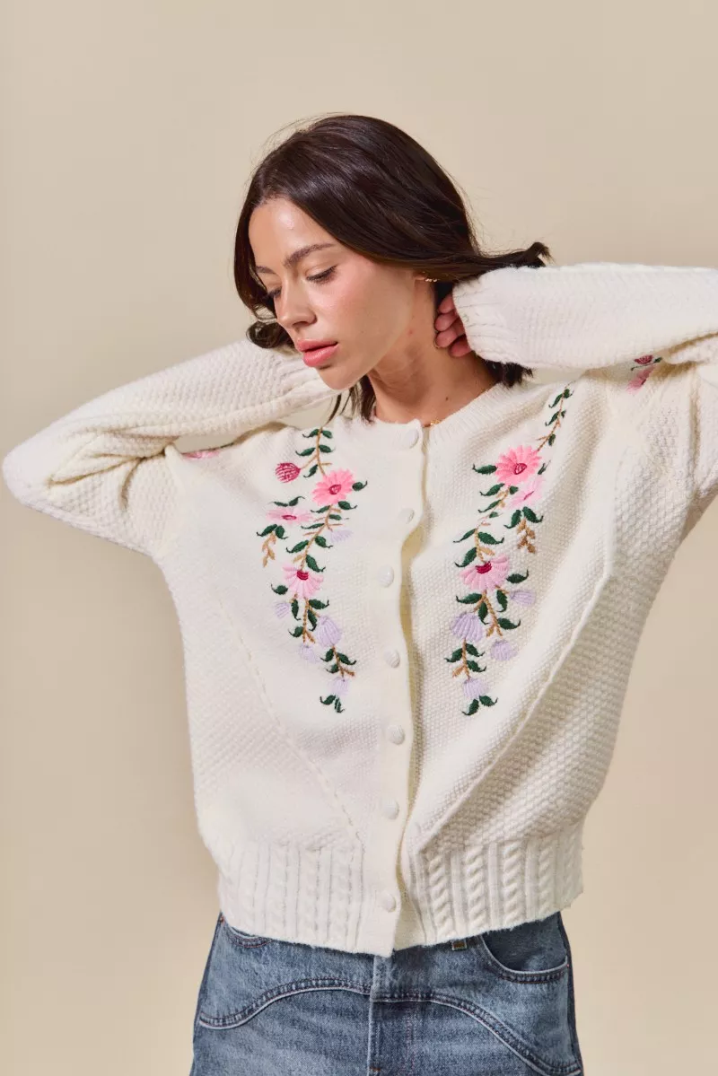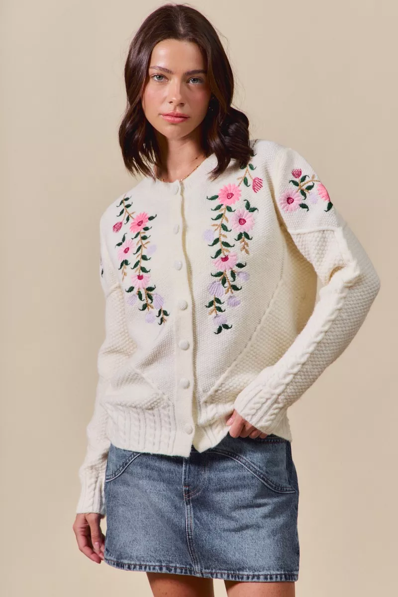 SO ME Floral Embroidered Coquette Sweater Cardigan