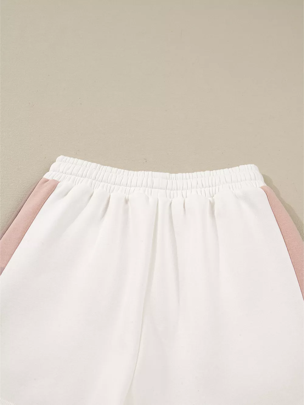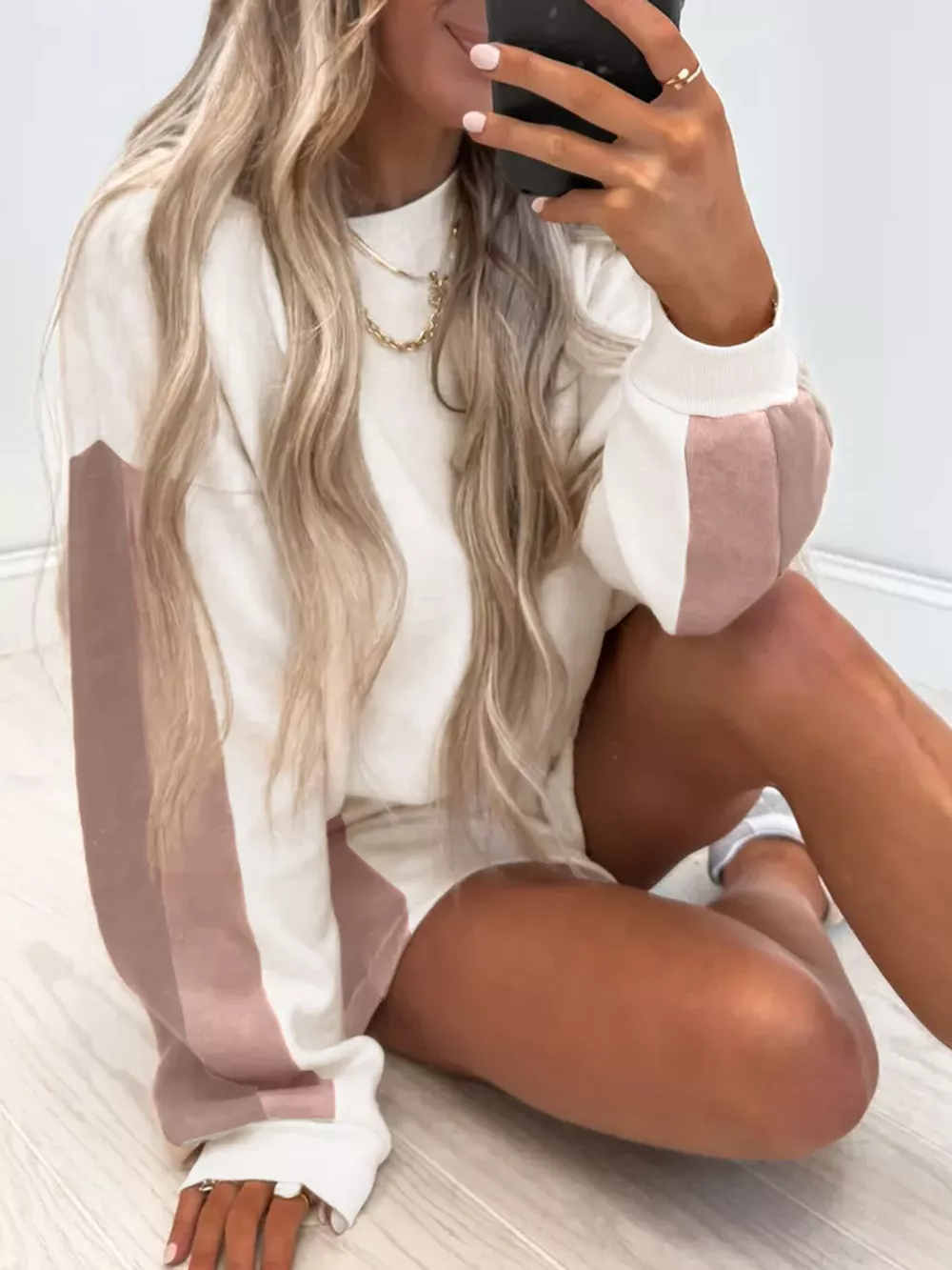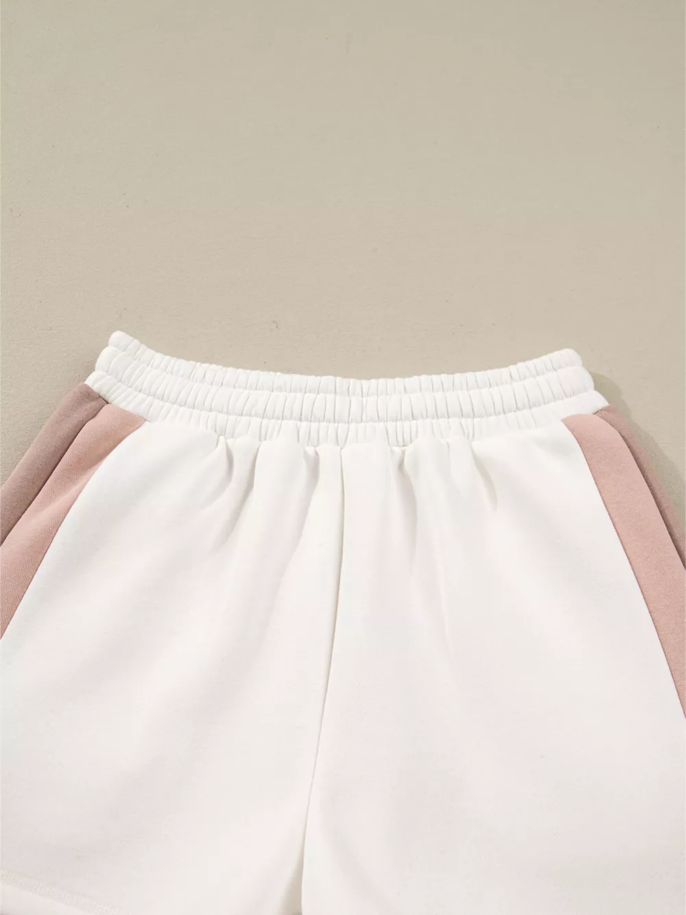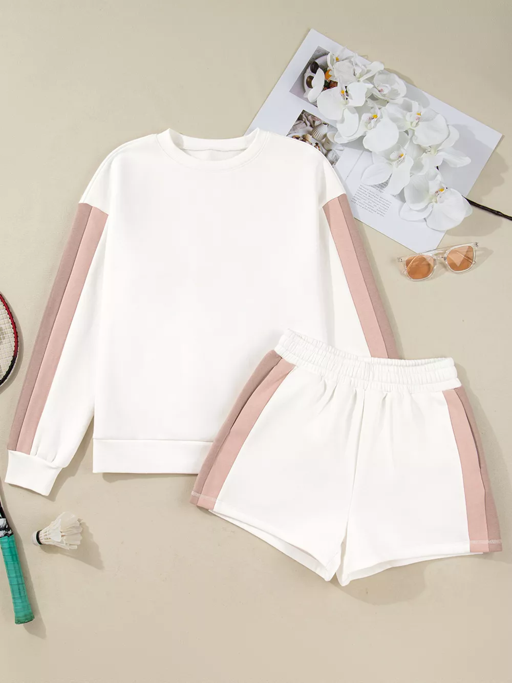 Color Block Patchwork Drop Shoulder Pullover and Shorts Set
