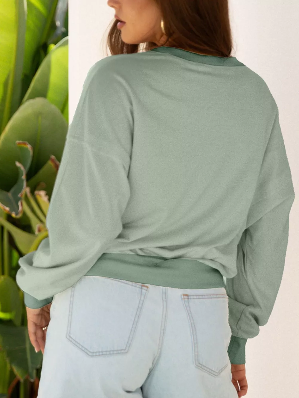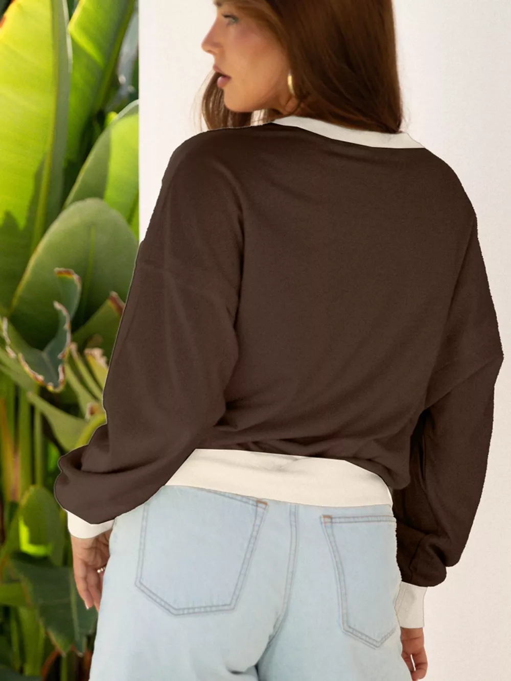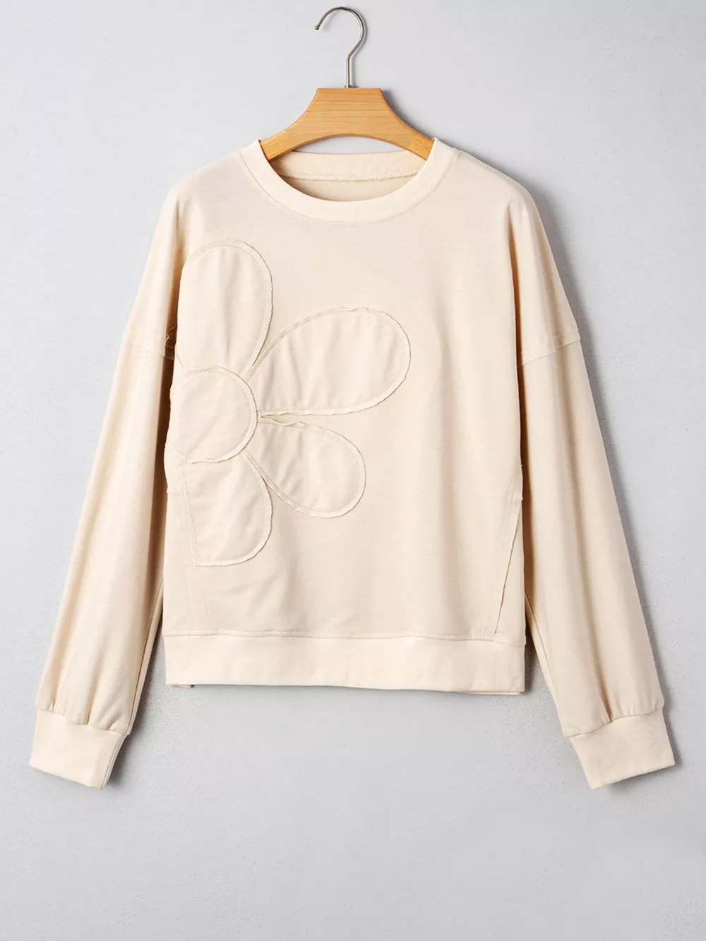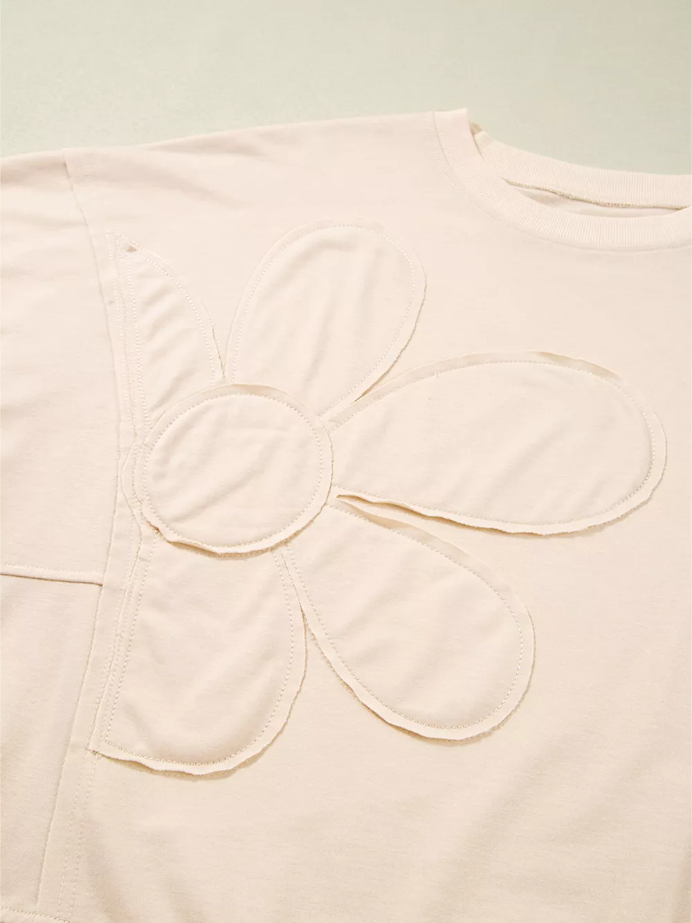Raw Edge Flower Patch Drop Shoulder Casual Top