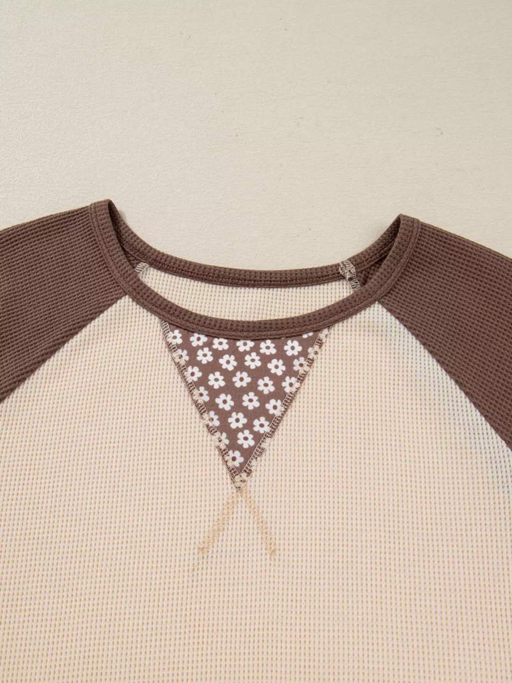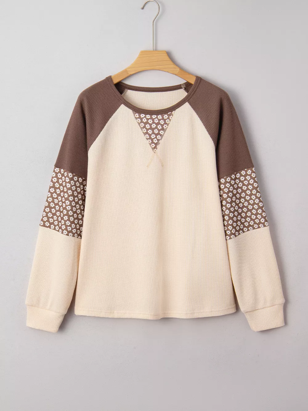 Floral Print Patchwork Color Block Long Sleeve Top