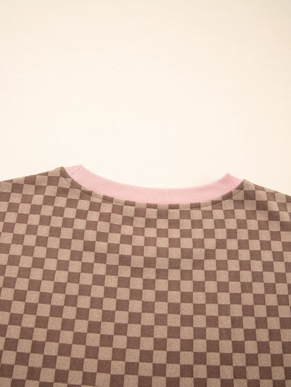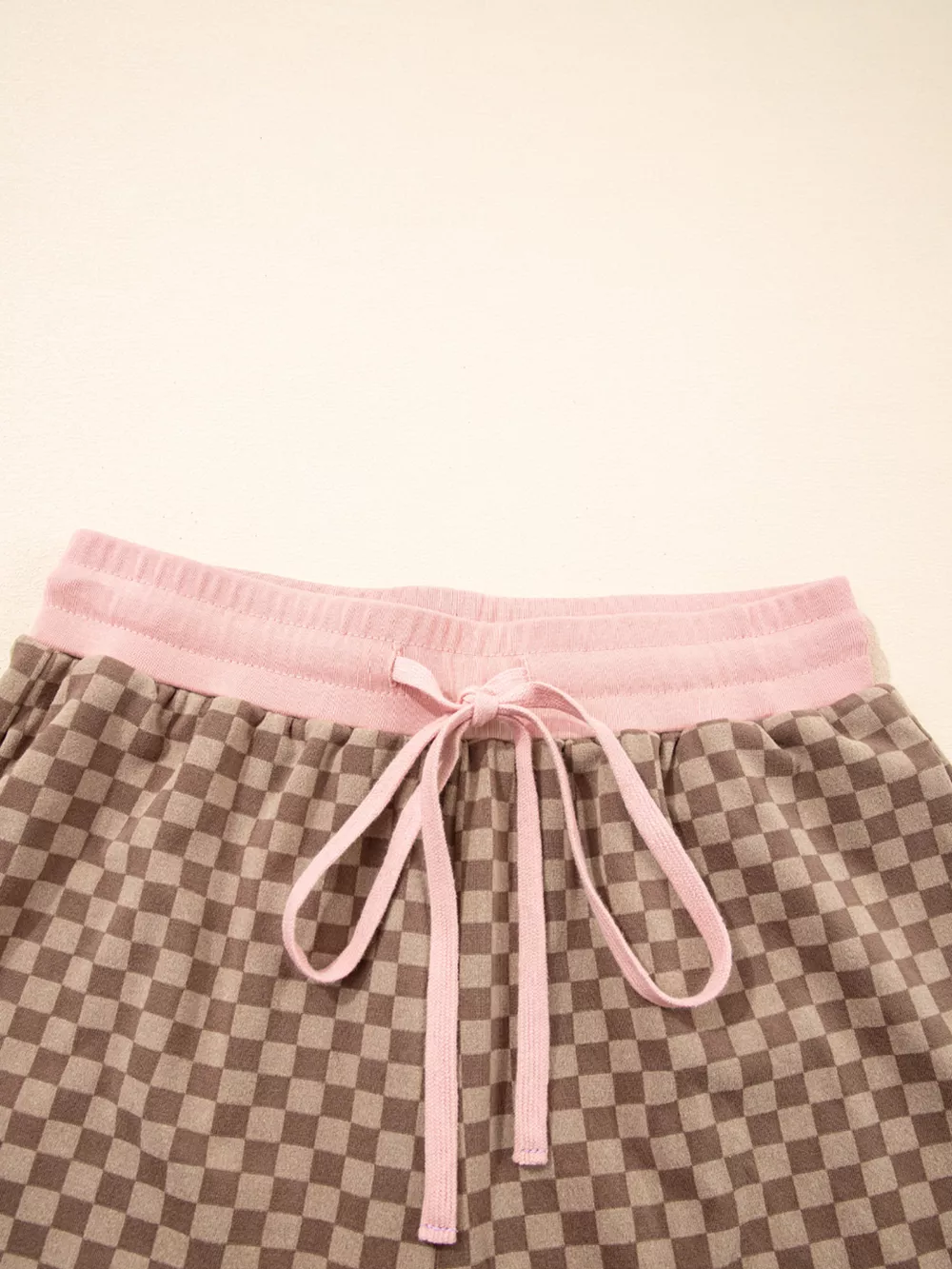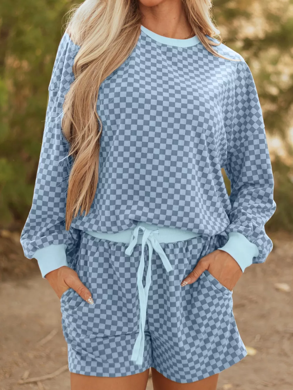 Checkerboard Long Sleeve Pullover and Shorts Set
