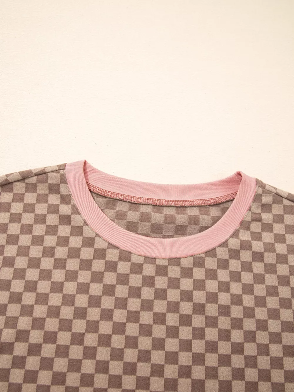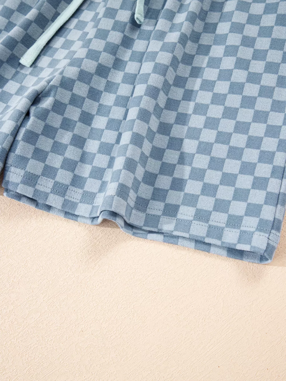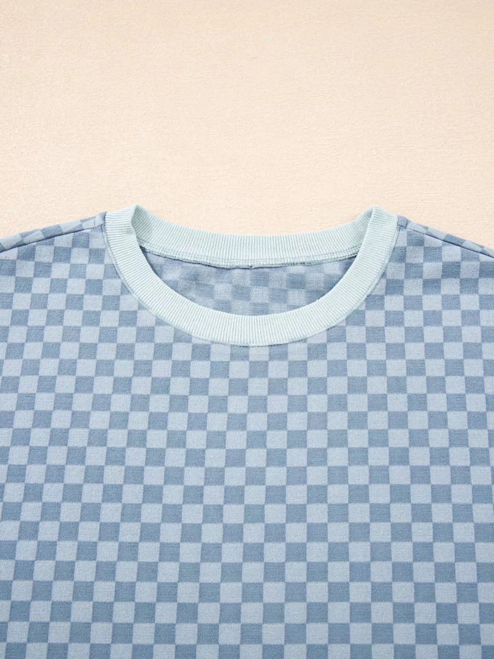 Checkerboard Long Sleeve Pullover and Shorts Set