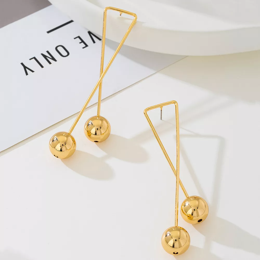 Modern Geometric Triangle Gold Ball Drop Earrings