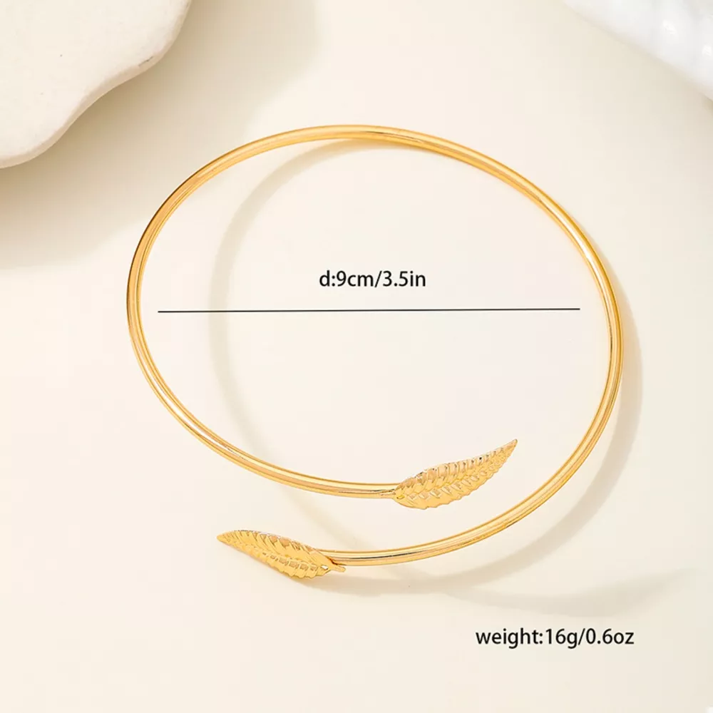 18K Gold-Plated Leaf Open Cuff Bracelet