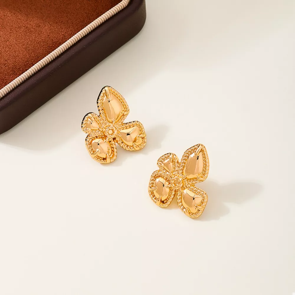 18K Gold-Plated Alloy Flower Stud Earrings