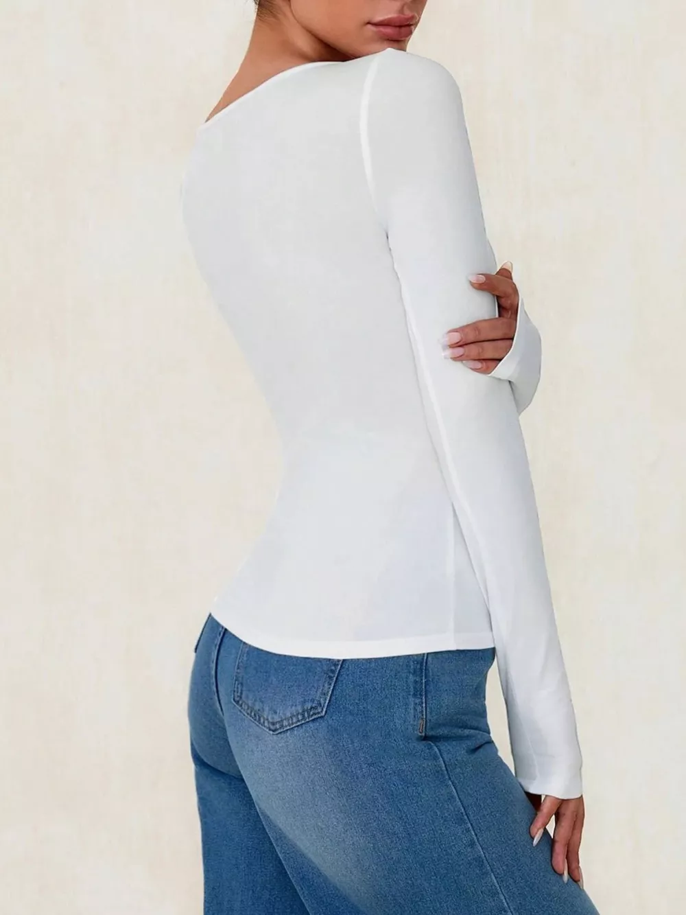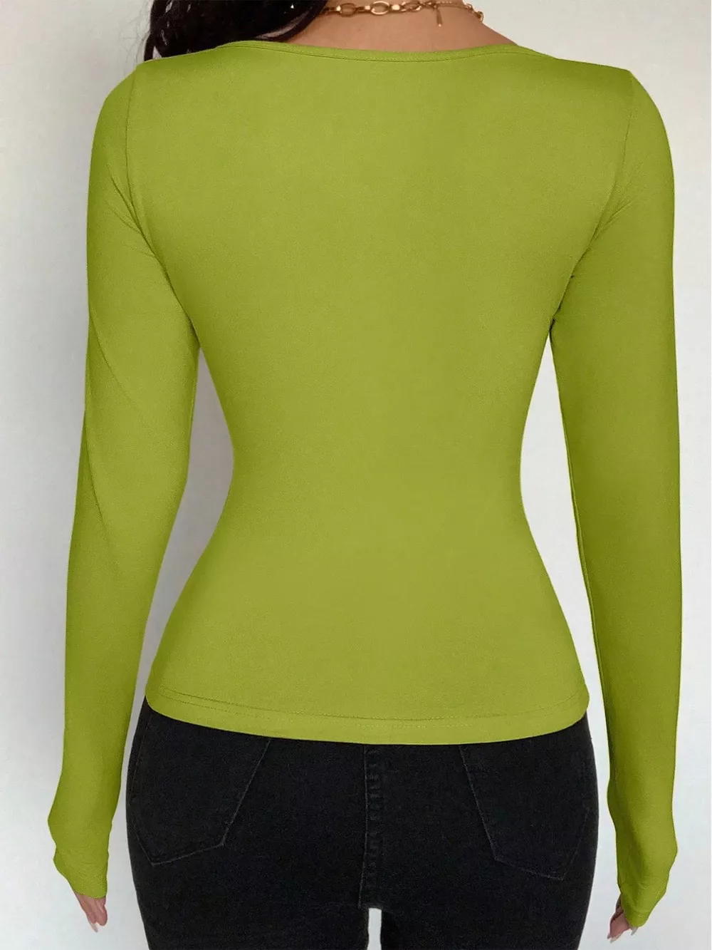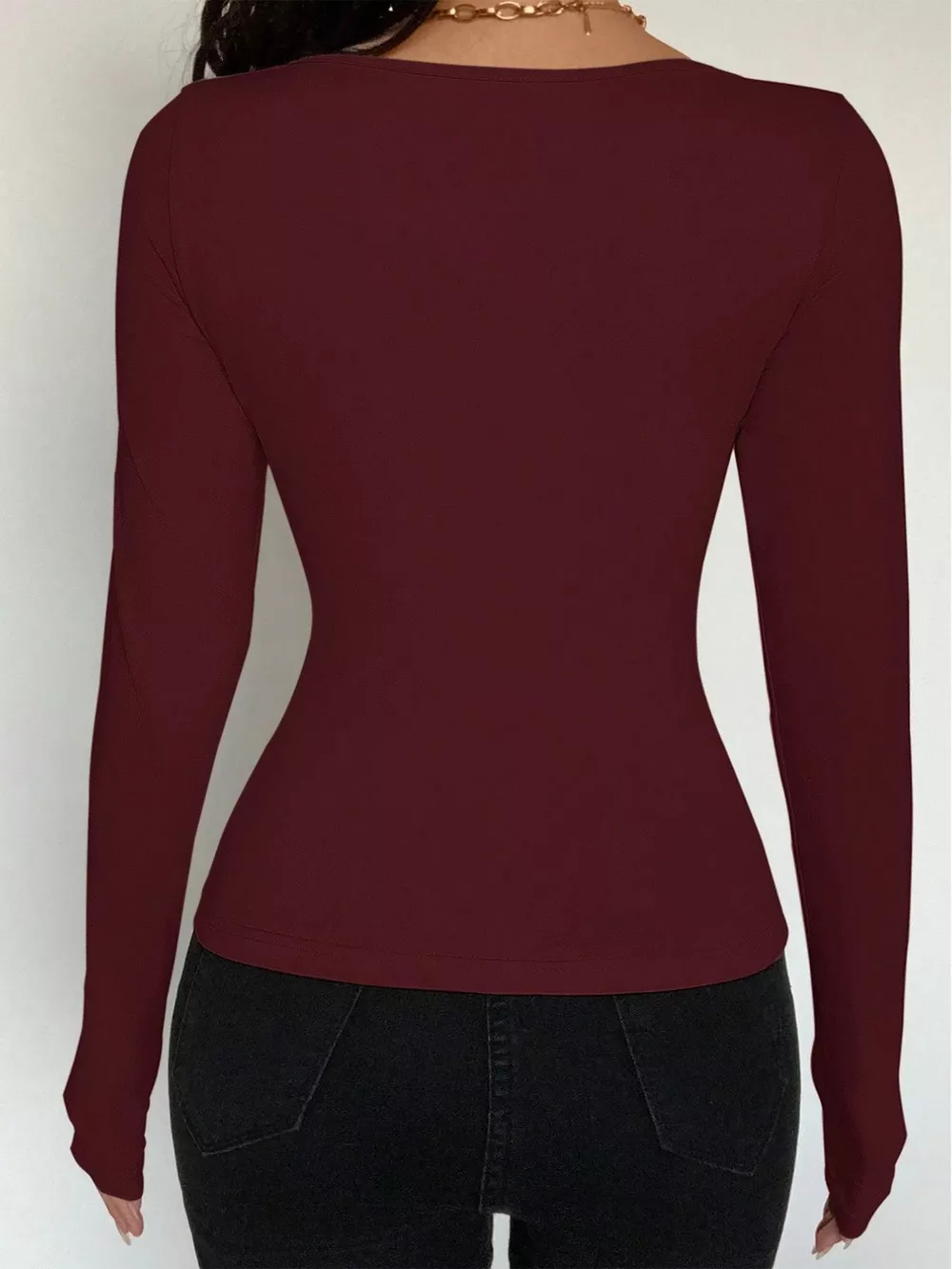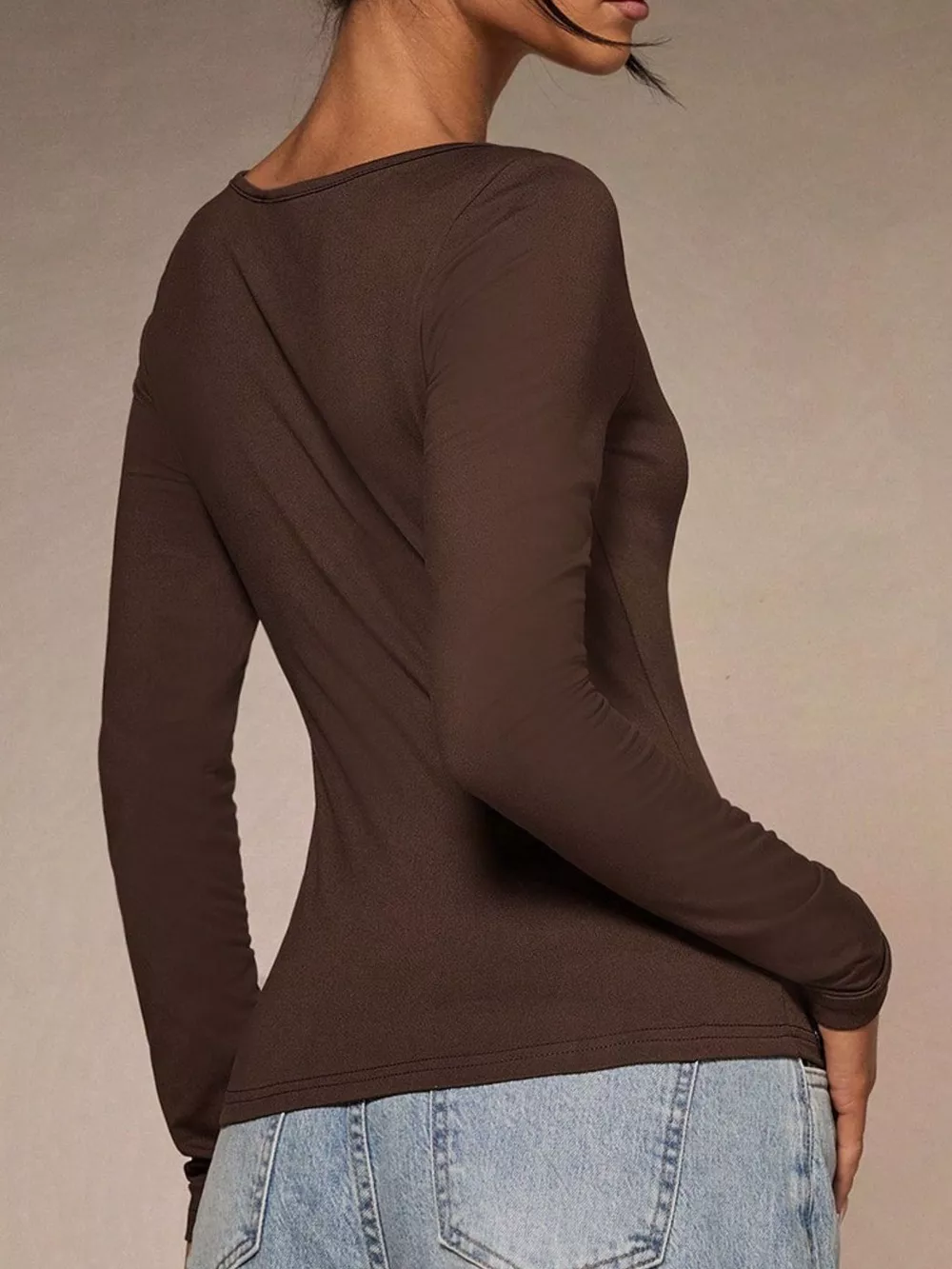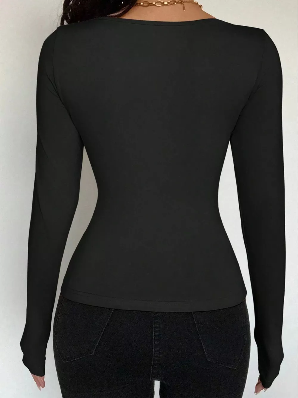 Long Sleeve Scoop Neck Tie Front T-Shirt