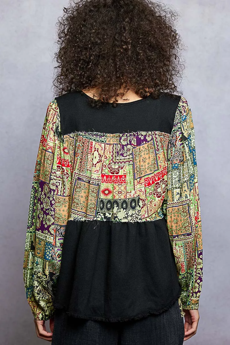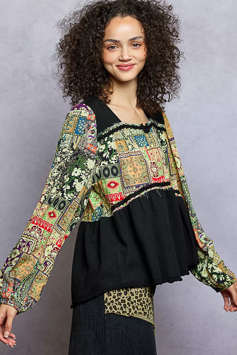 POL Balloon Sleeve Peplum Blouse with Trim Detail