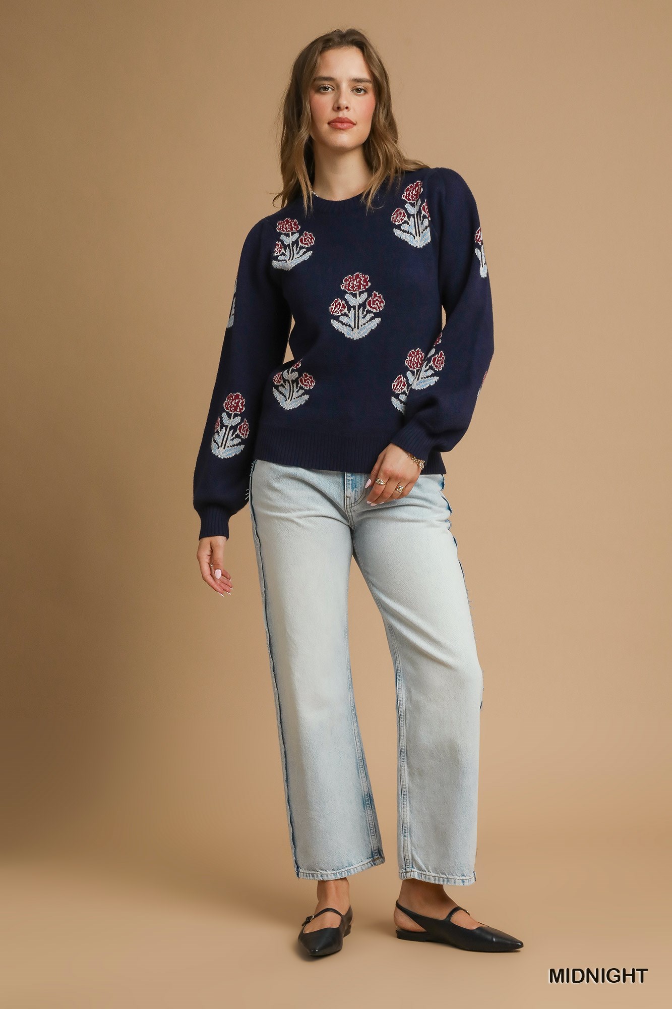 Add a touch of femininity to your winter wardrobe with this Floral Knit Sweater featuring puff sleeves. The floral pattern gives this sweater a delicate and elegant look. The puff sleeves add a trendy and statement-making detail to the design. Made from cozy knit fabric, this sweater is perfect for staying warm and stylish on chilly days. Pair it with high-waisted jeans or a skirt for a chic and romantic outfit that will elevate your winter style.