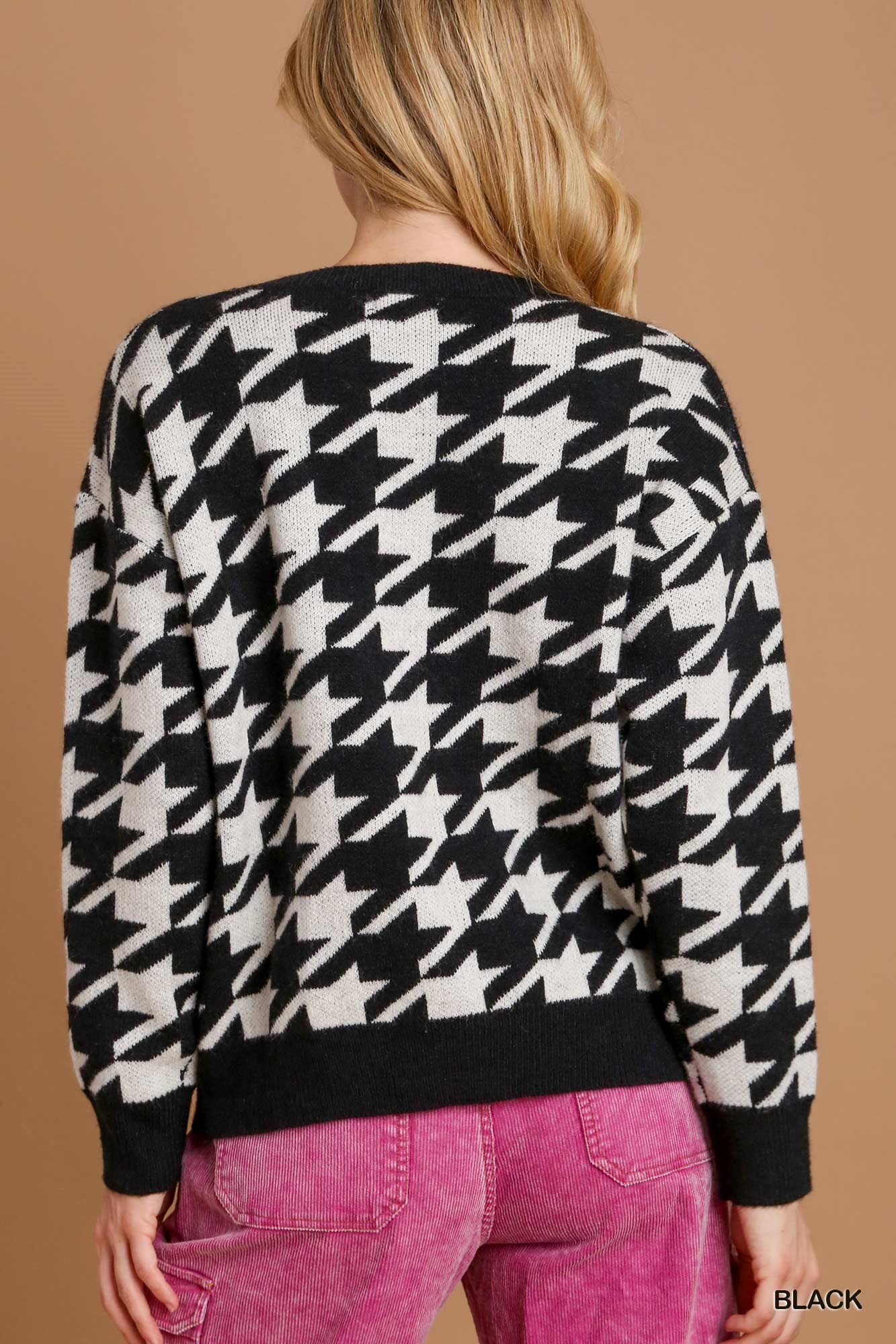 Umgee Houndstooth Round Neck Sweater