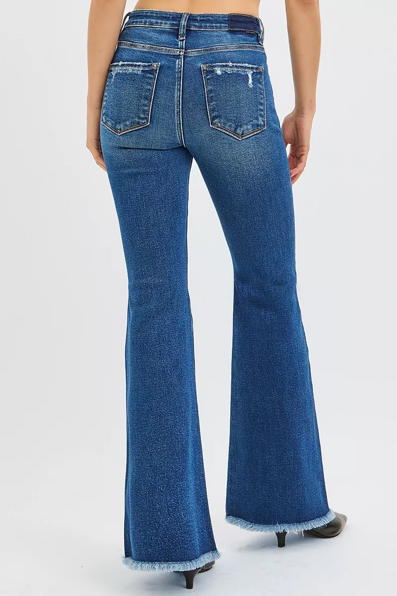 Step into retro-inspired style with these high rise flare jeans that exude 70s vibes. The high rise waist accentuates your curves and elongates your legs for a flattering silhouette. The dramatic flare leg adds a statement-making touch to your outfit, perfect for a bohemian or vintage look. Pair these jeans with platform shoes or boots to enhance the retro aesthetic. Embrace a groovy vibe with these high rise flare jeans for a fun and fashion-forward ensemble.