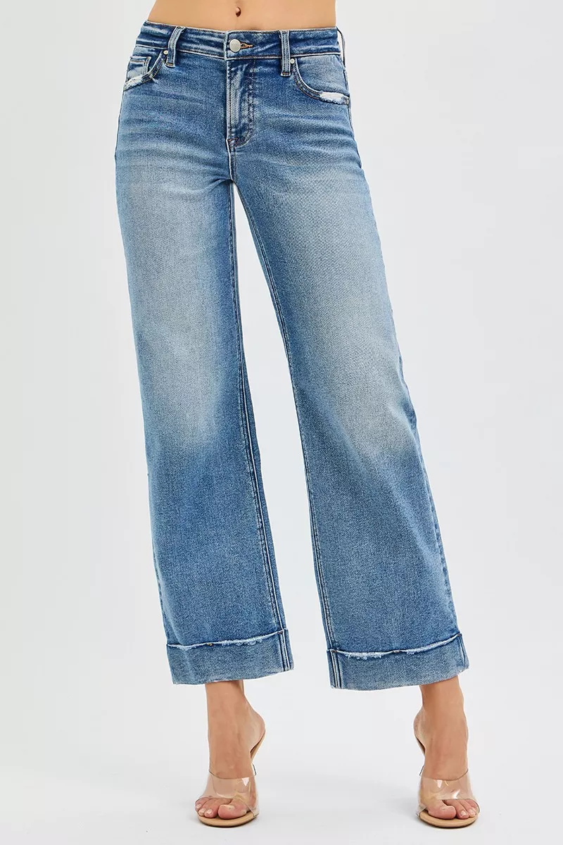 RISEN Full Size Mid Rise Crop Straight Jeans with Taylor Cuffed Plus Size