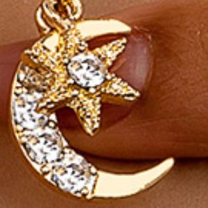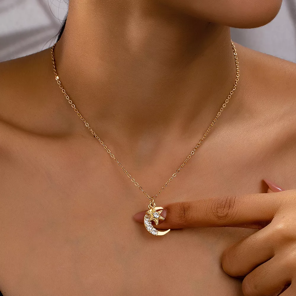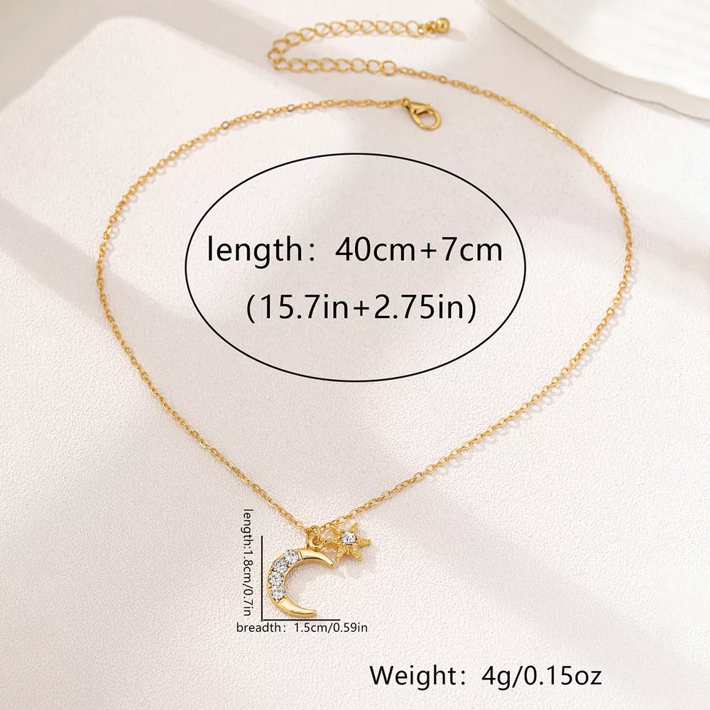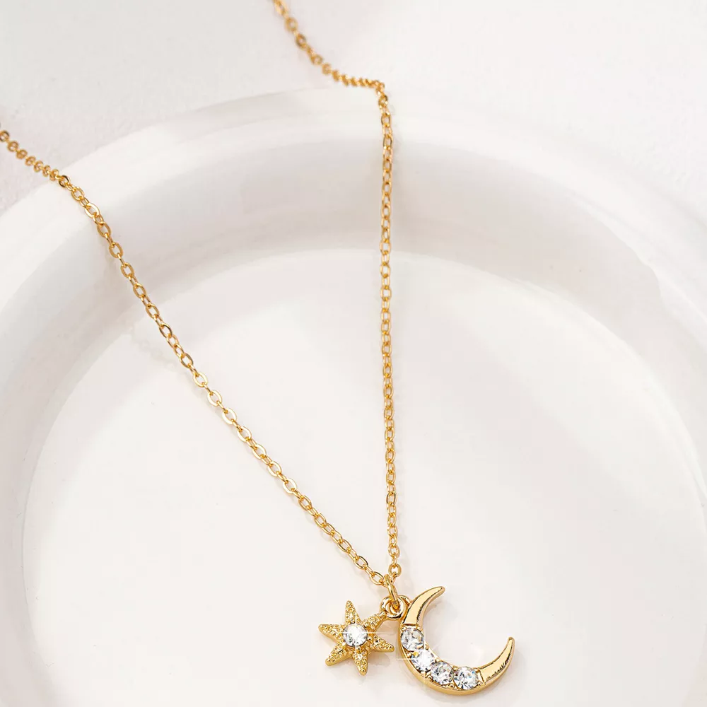 18K Gold-Plated Rhinestone Star & Moon Necklace