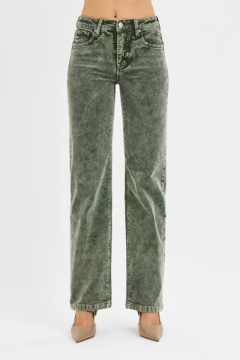 RISEN Tummy Control Mid Rise Straight Leg Corduroy Pants