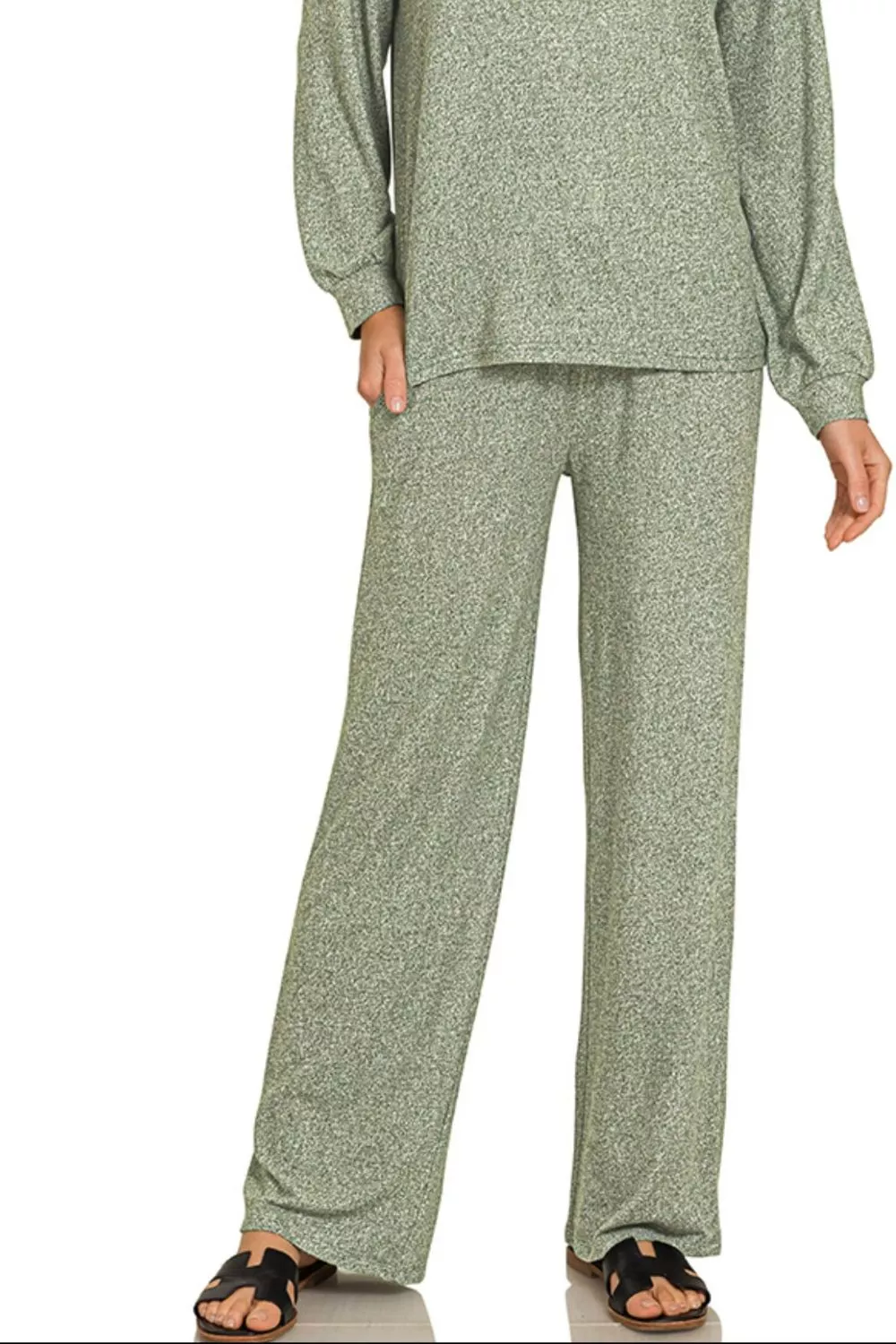 Zenana Soft Melange Long Sleeve Tee & Pants Set