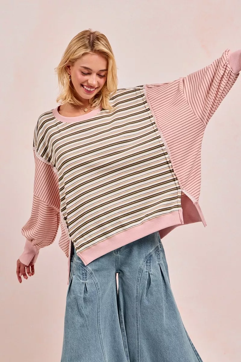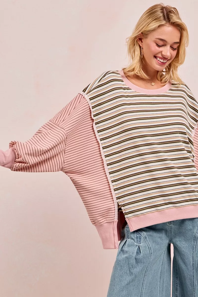 BiBi Stripe Mixed Top With Cut Edge And Reverse Outseam