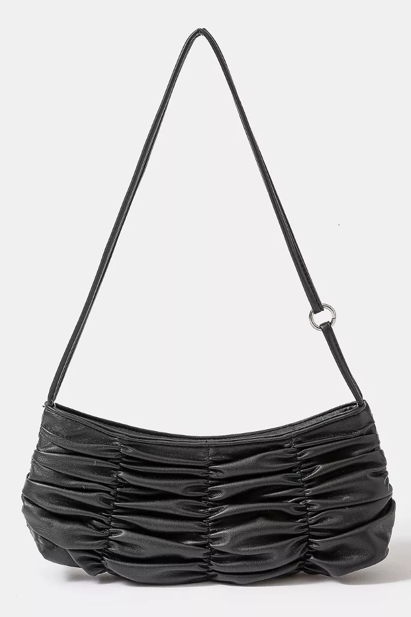 Elevate your handbag collection with the segmented pleated faux leather handbag, featuring a unique and sophisticated design. The segmented pleats add texture and visual interest to the faux leather material, creating a chic and modern look. This handbag offers a structured silhouette that is both stylish and elegant, perfect for adding a touch of refinement to any outfit. With its versatile design and spacious interior, you can effortlessly transition from day to night with this statement accessory. Make a fashion-forward statement with the segmented pleated faux leather handbag for a touch of contemporary flair.