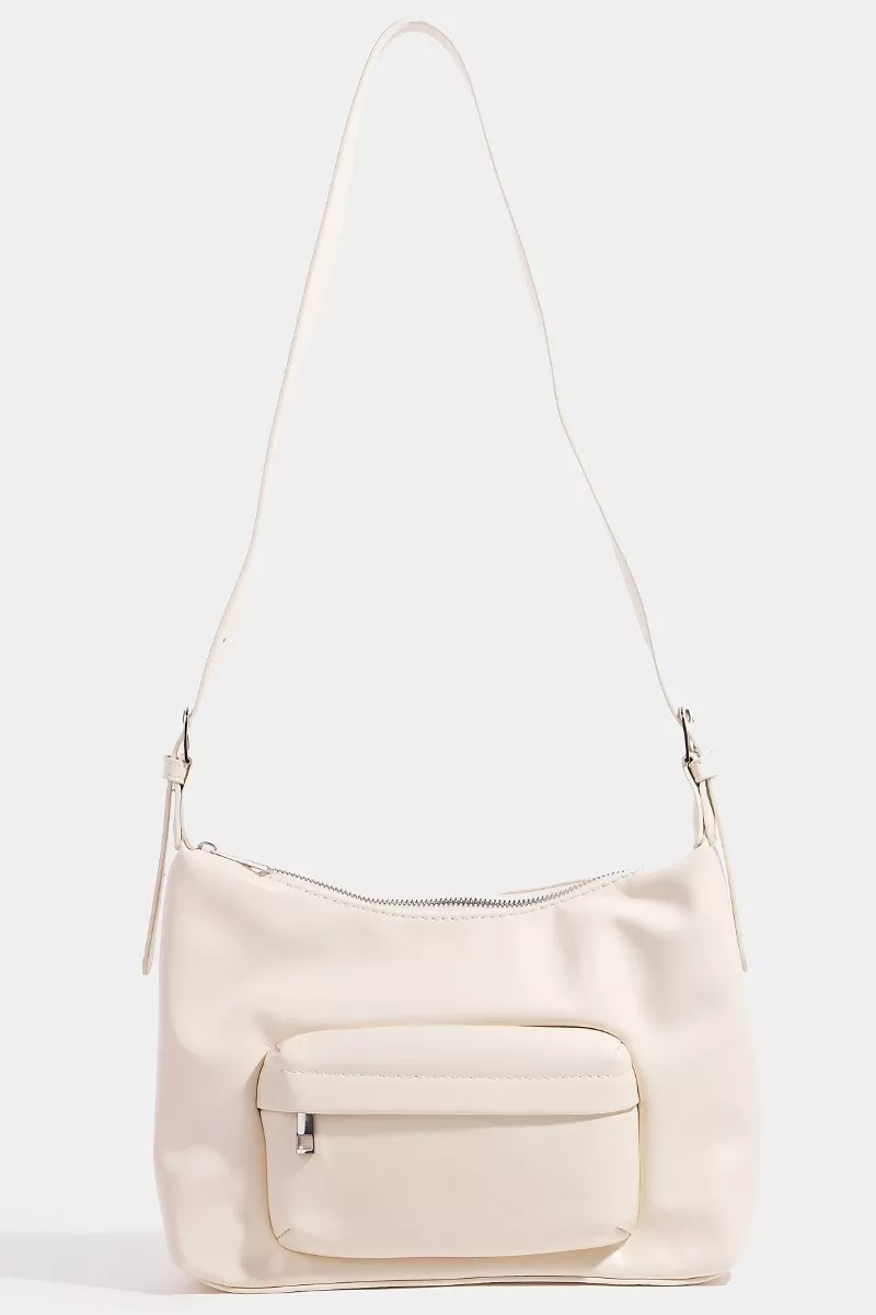 This elegant shoulder bag features premium beige leather construction with a minimalist design that effortlessly combines style and functionality. The soft, supple leather material offers durability and luxury feel, while the adjustable shoulder strap provides comfortable carrying options. The standout front zip pocket adds practical storage for essentials, making it perfect for busy lifestyles. The neutral beige color ensures versatility, complementing any outfit from casual to professional. The spacious main compartment offers ample storage space, while the modern hobo-style silhouette creates a contemporary look. Quality metal hardware and expert craftsmanship ensure long-lasting use, making this shoulder bag an essential accessory for the modern woman.
