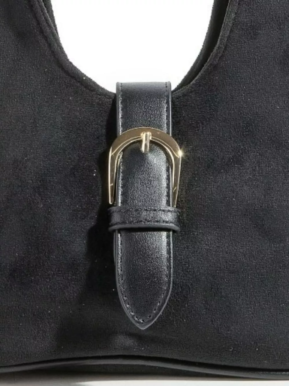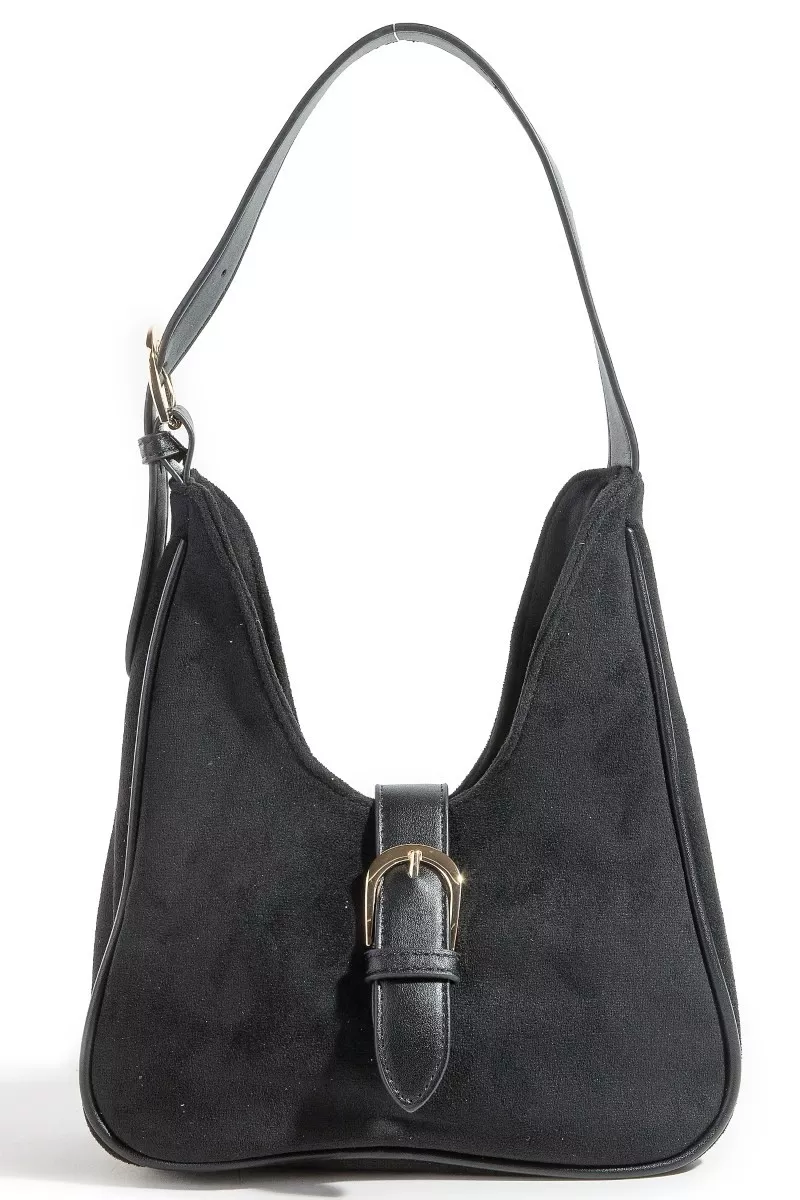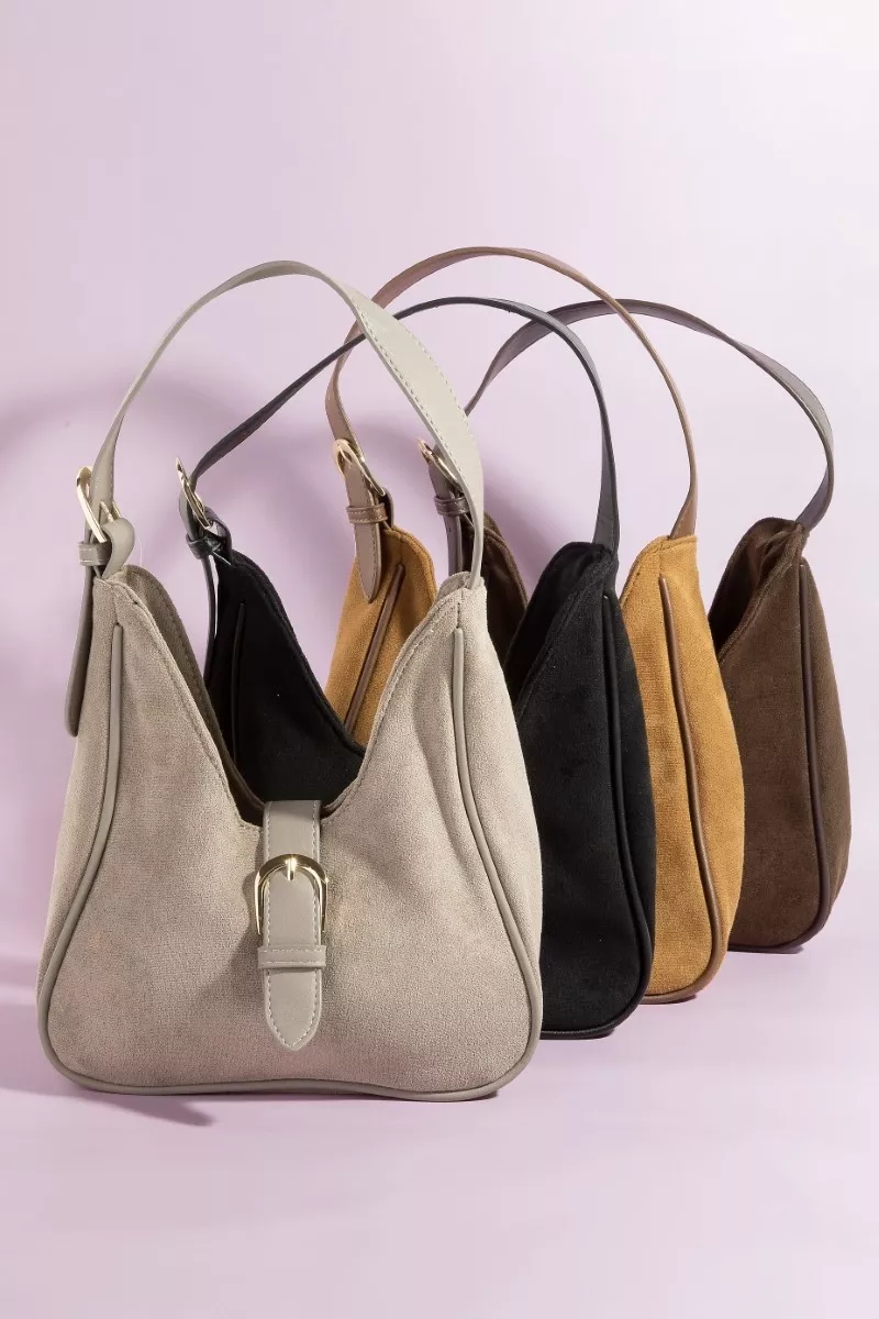 Fame Buckle Accent Faux Suede Hand Bag
