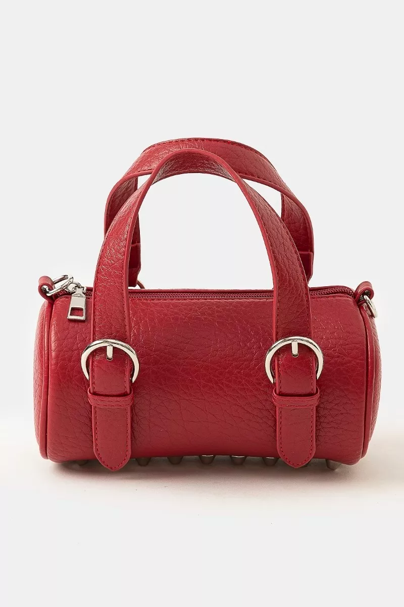 Fame Faux Leather Buckle Strap Cylinder Hand Bag