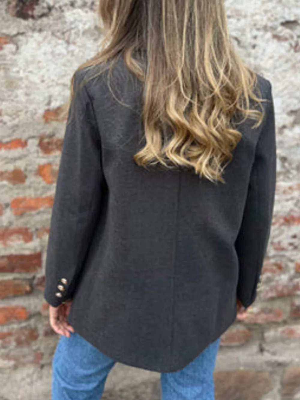 Full Size Double Breasted Long Sleeve Blazer Plus Size