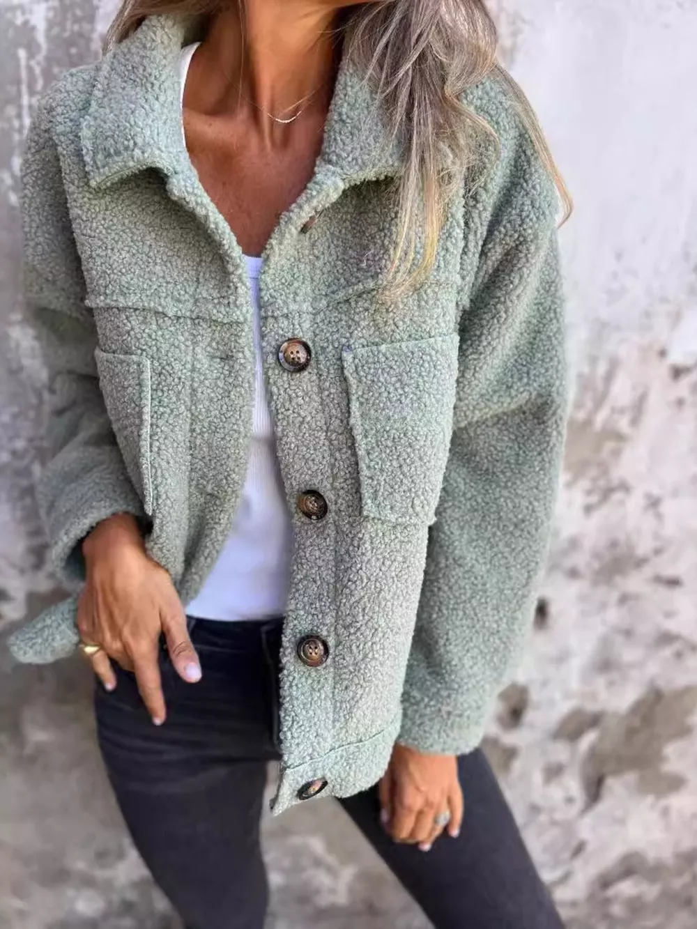 Full Size Single-Breasted Sherpa Shacket Plus Size