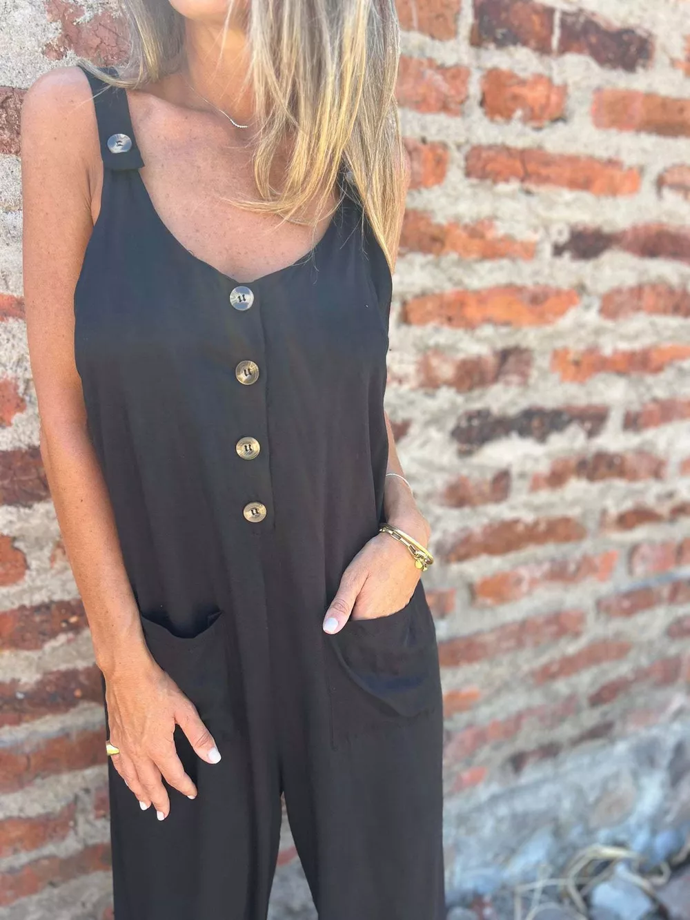 Full Size Button-Front Wide Leg Jumpsuit Plus Size