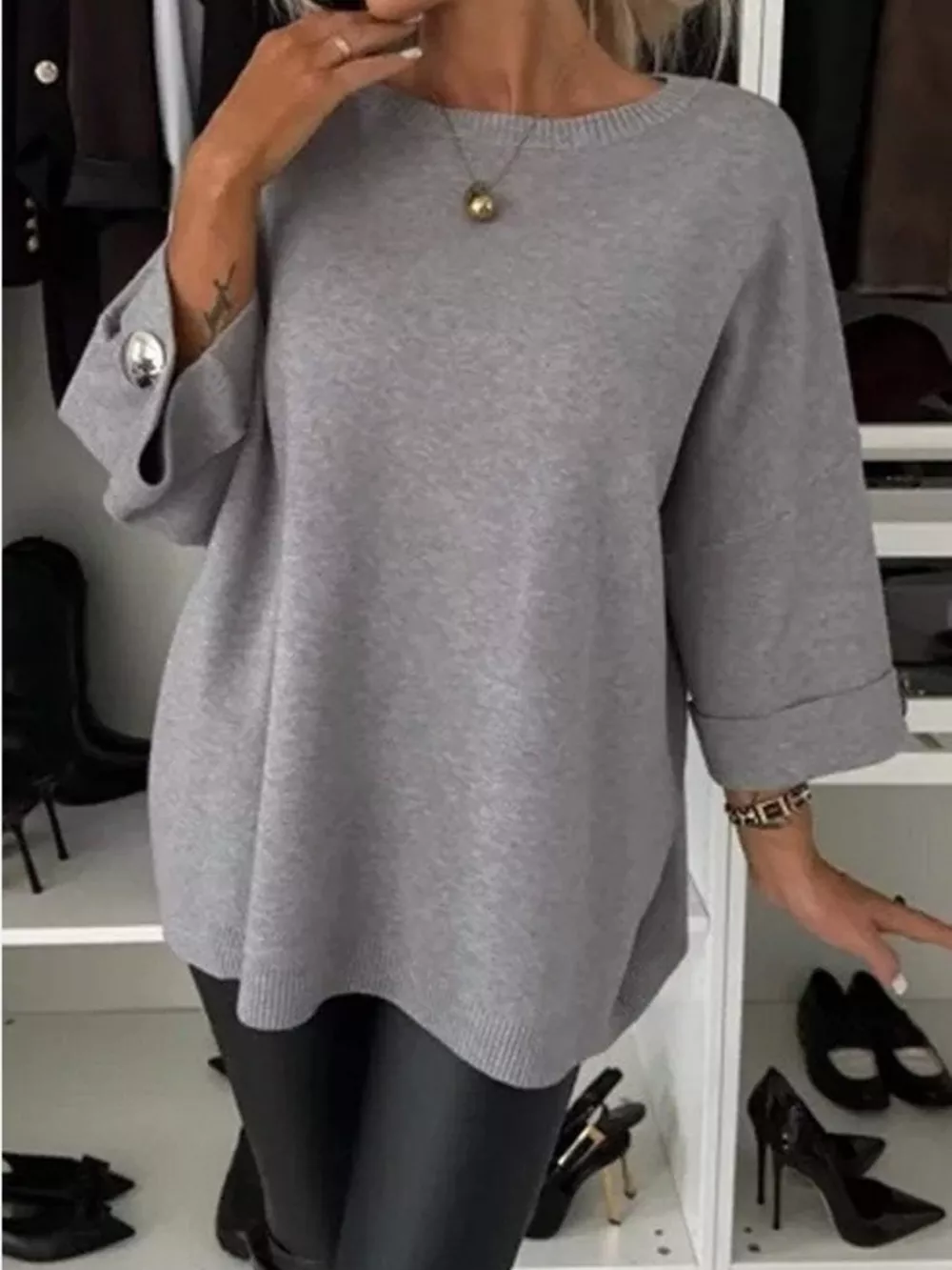 Full Size Round Neck Drop Shoulder Top with Ribbed Trim Plus Size