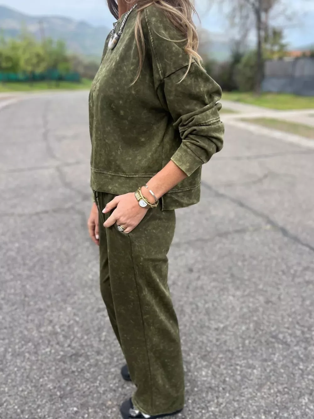 Full Size Washed Round Neck Top and Drawstring Pants Set Plus Size