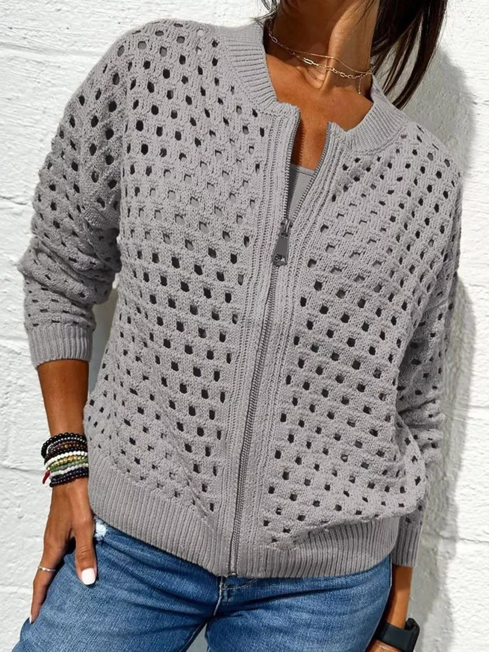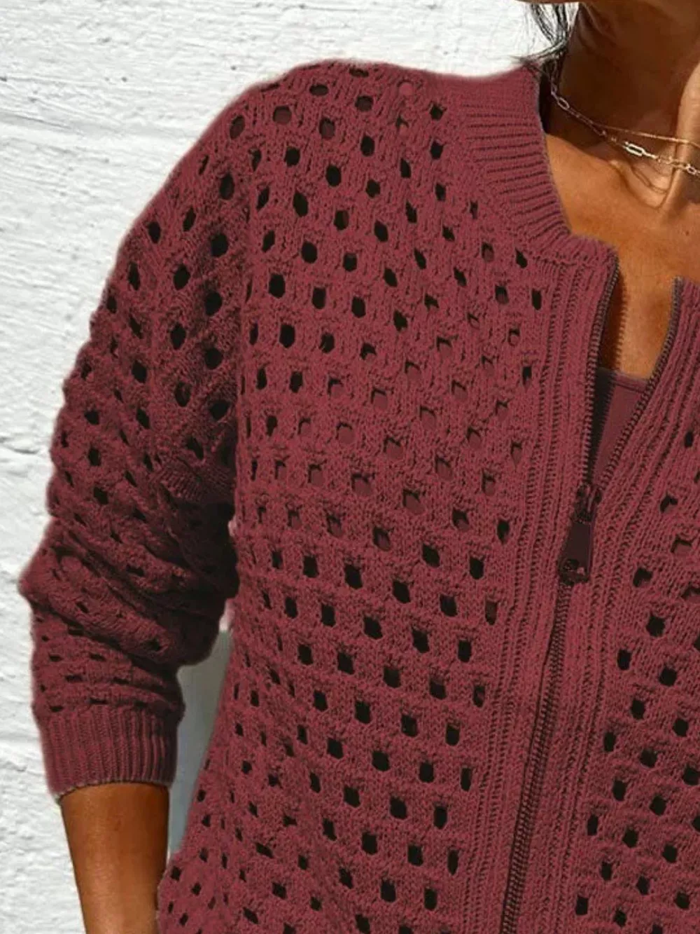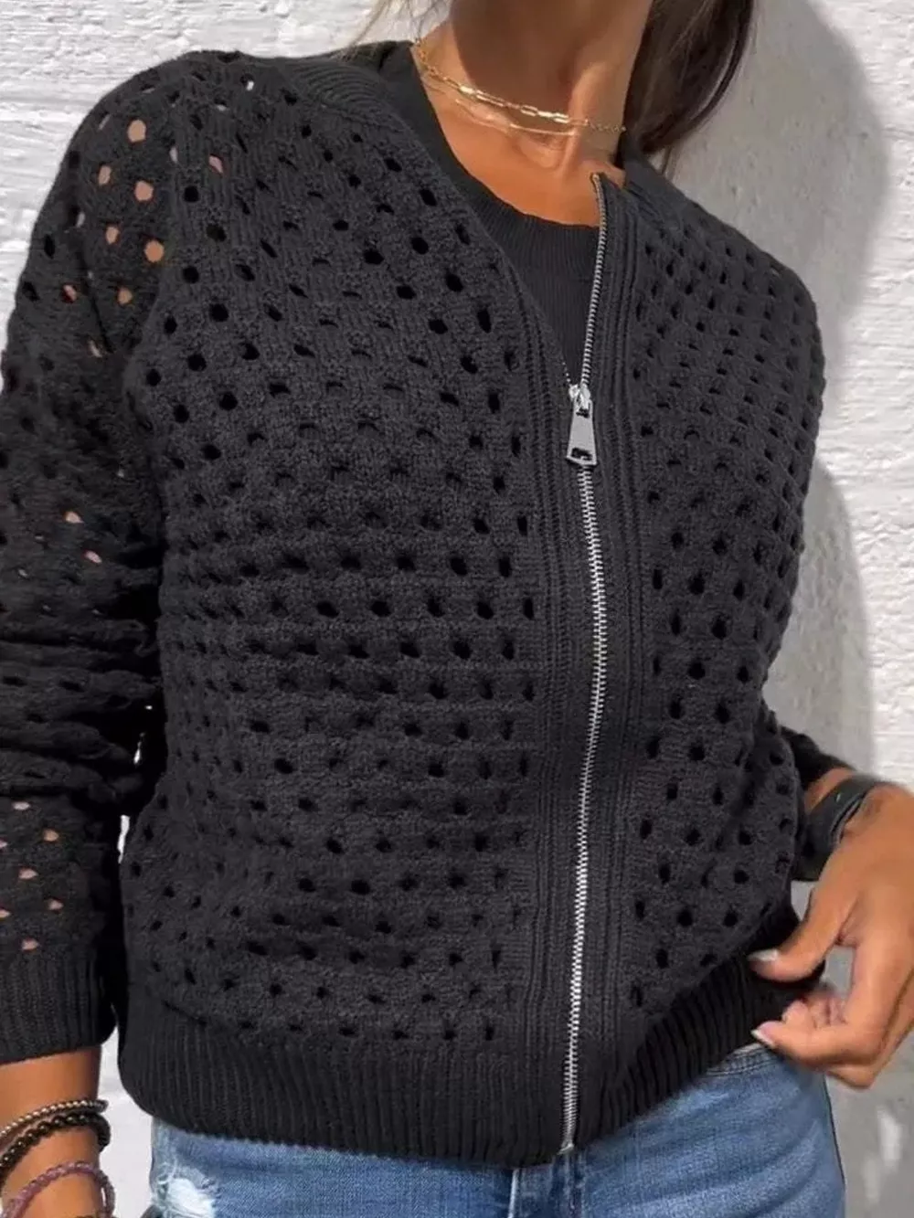 Full Size Zip Up Long Sleeve Cardigan with Eyelet Detail Plus Size