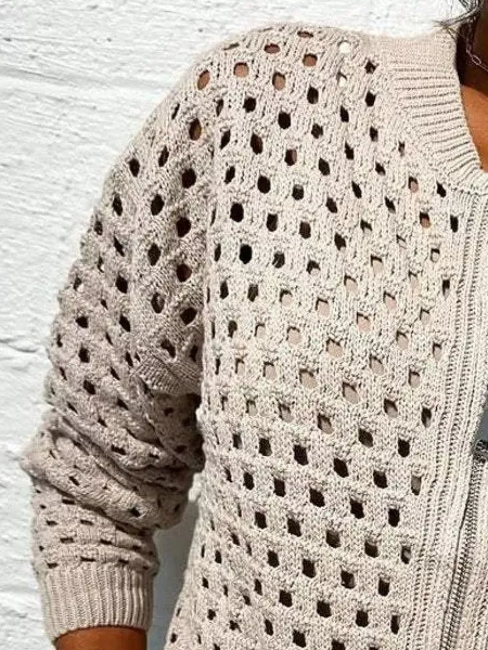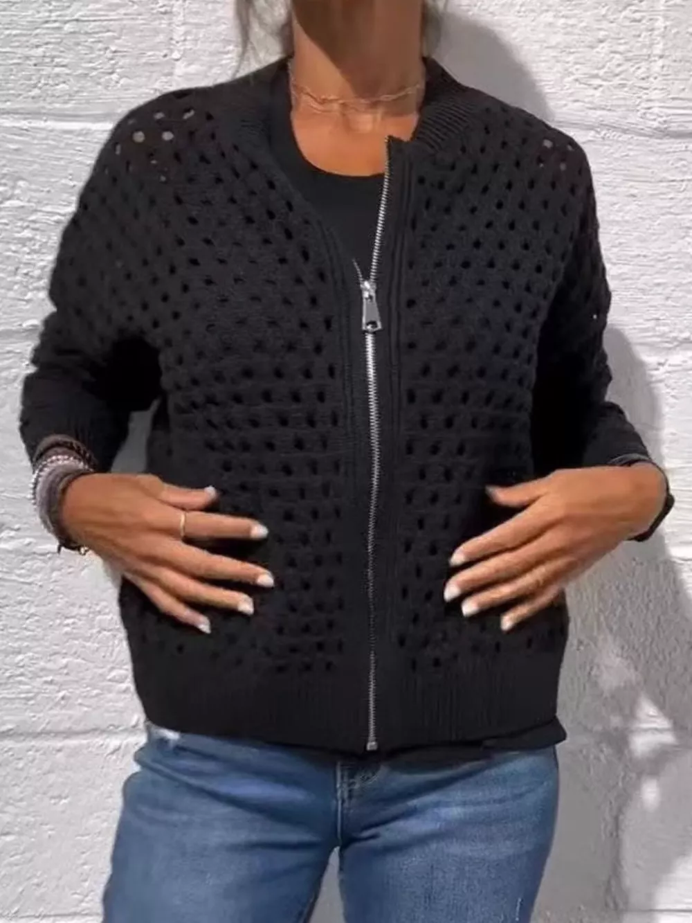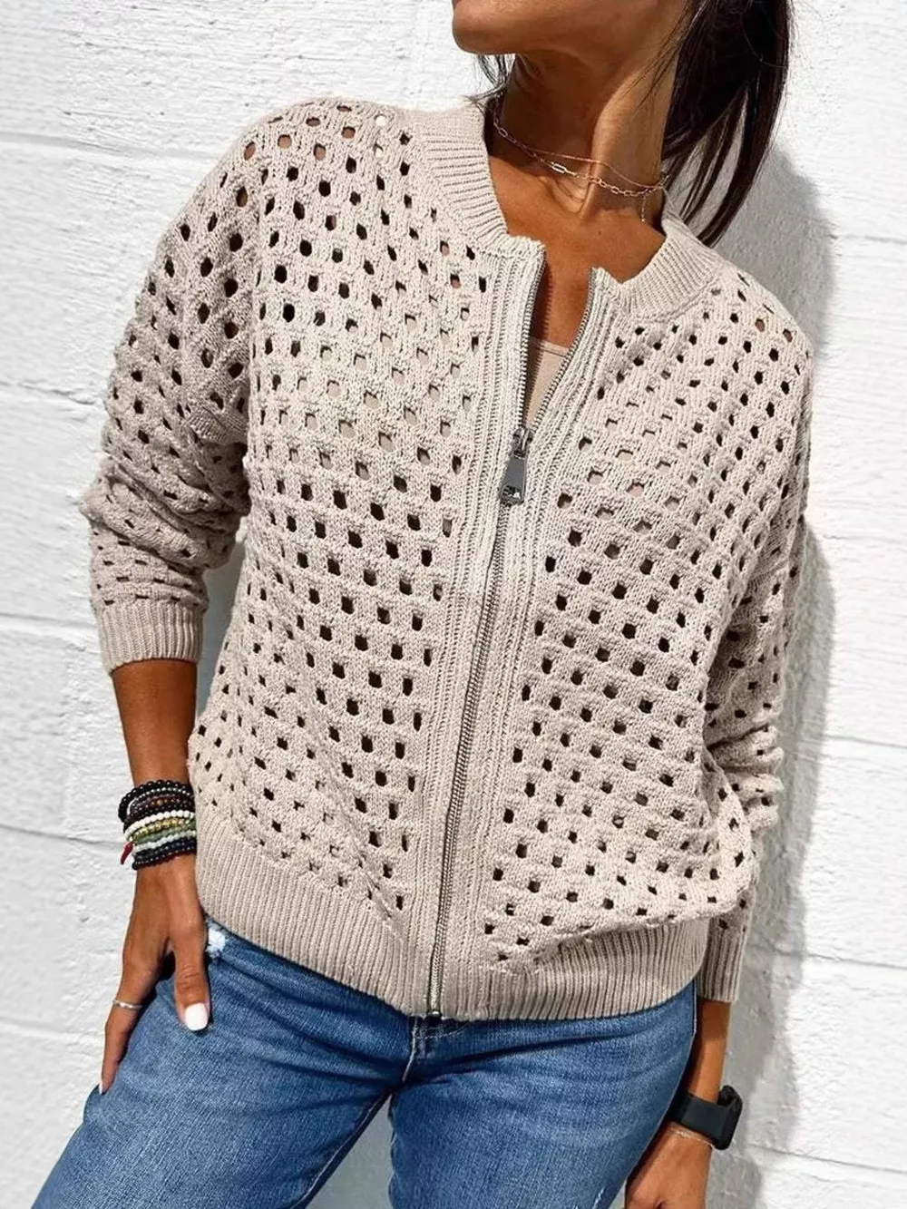 Full Size Zip Up Long Sleeve Cardigan with Eyelet Detail Plus Size