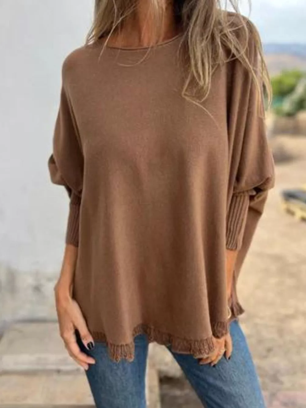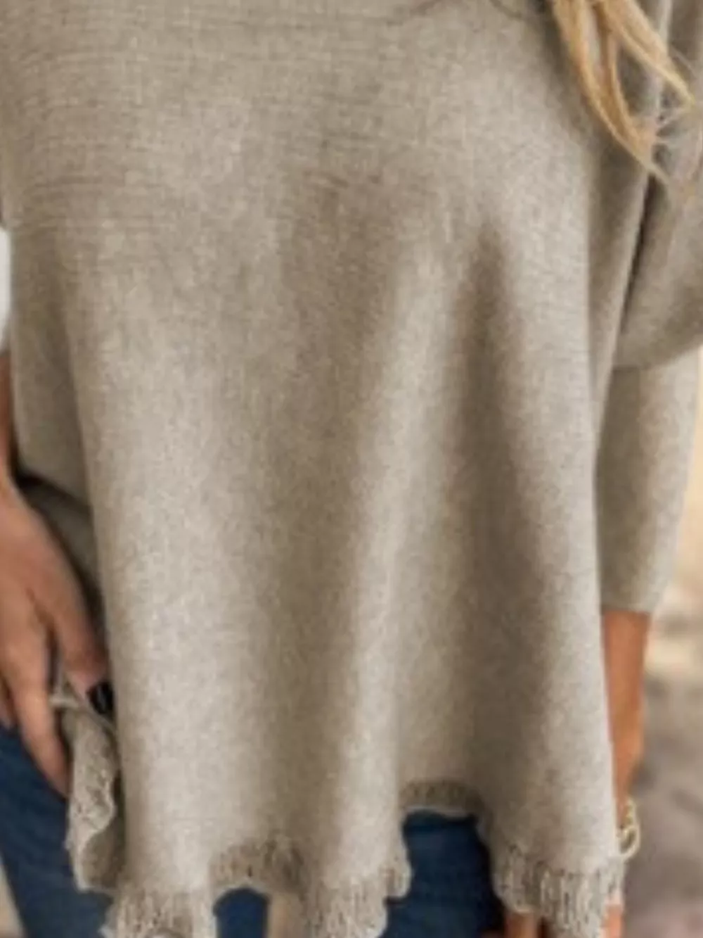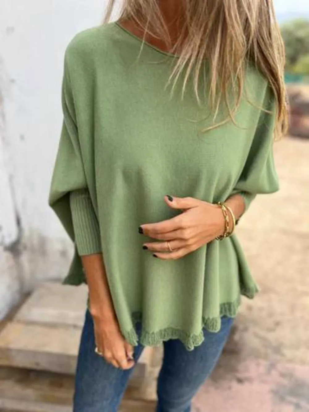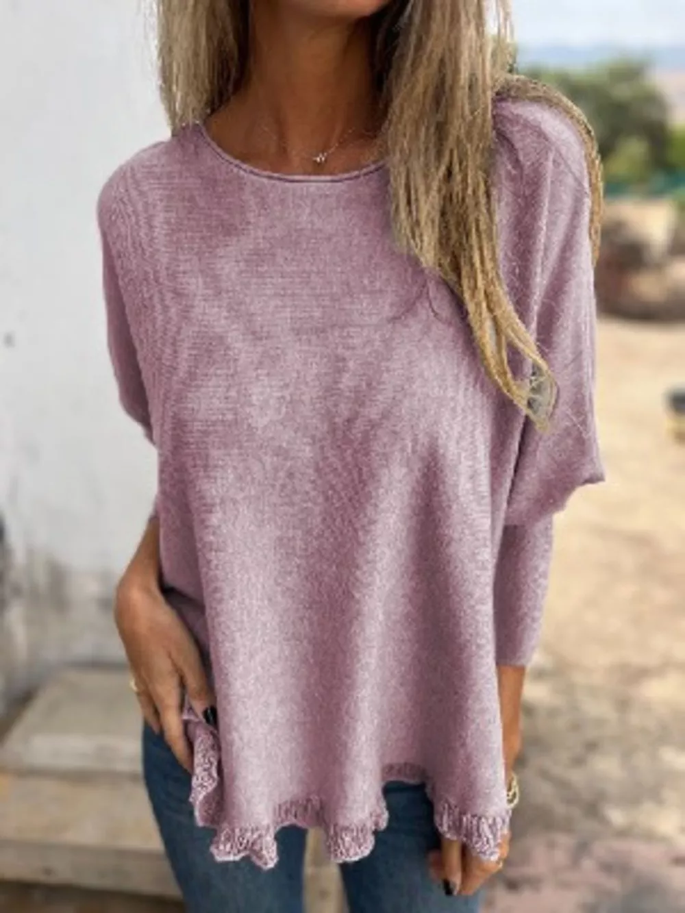 Full Size Round Neck Long Sleeve Knit Top with Lace Trim Plus Size