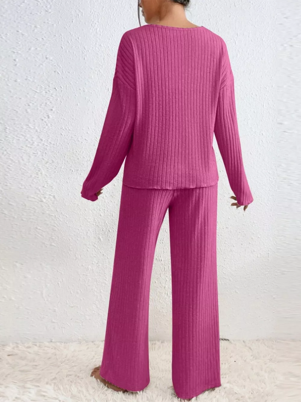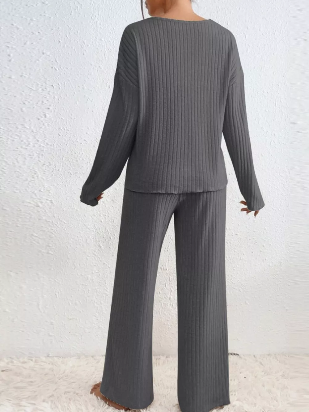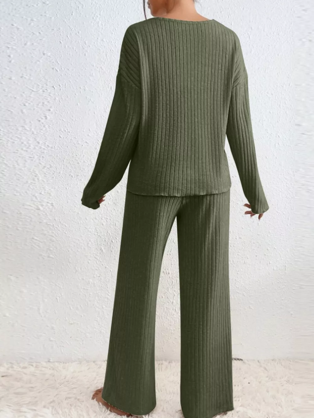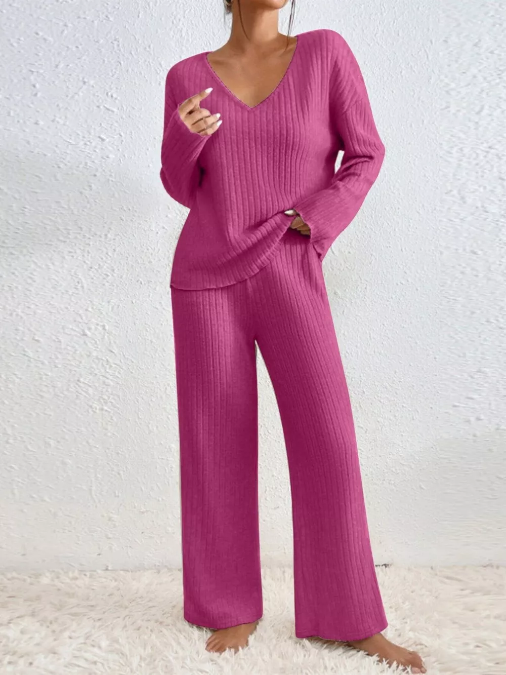 Ribbed V-Neck Top and Pants Set
