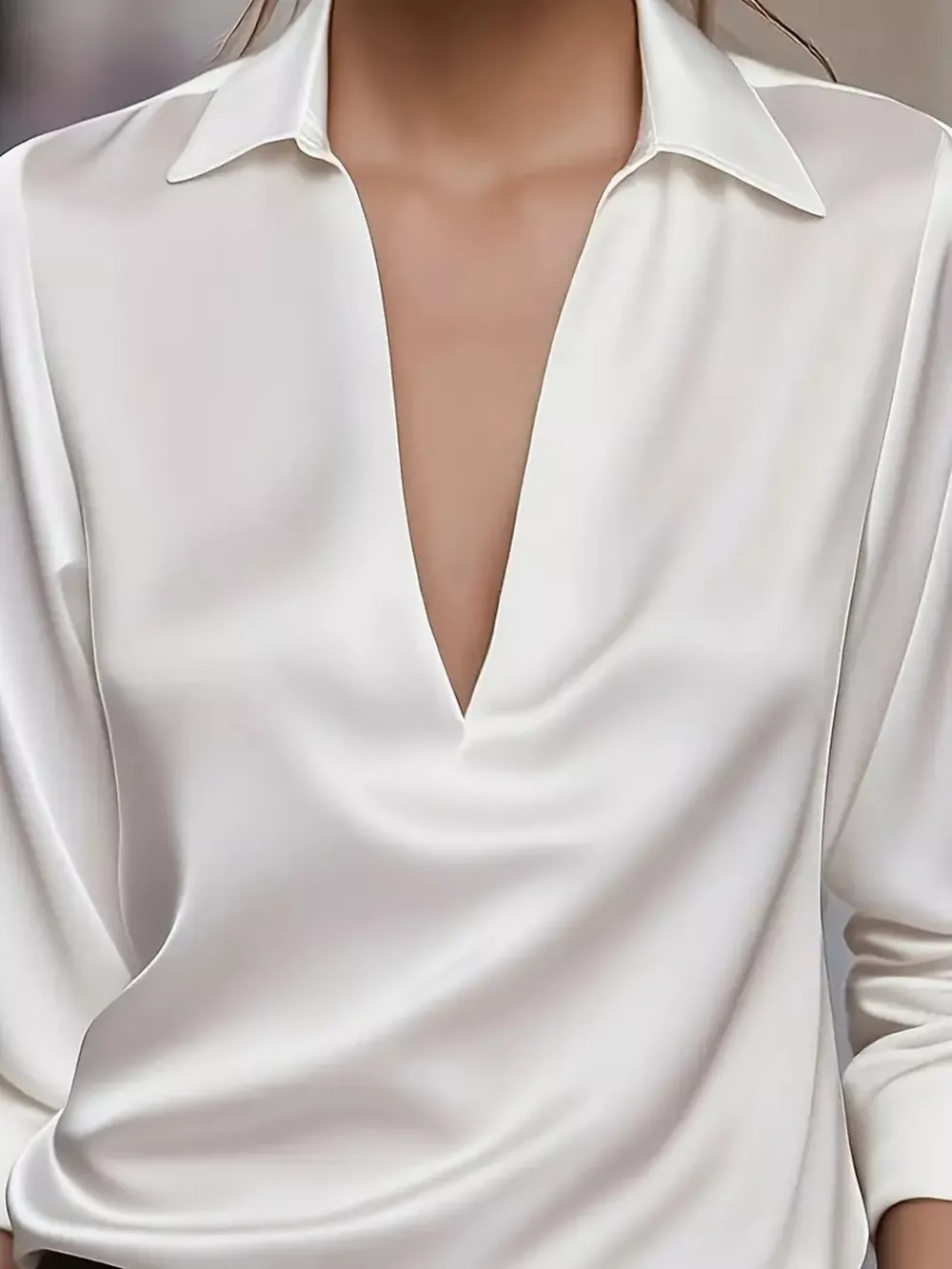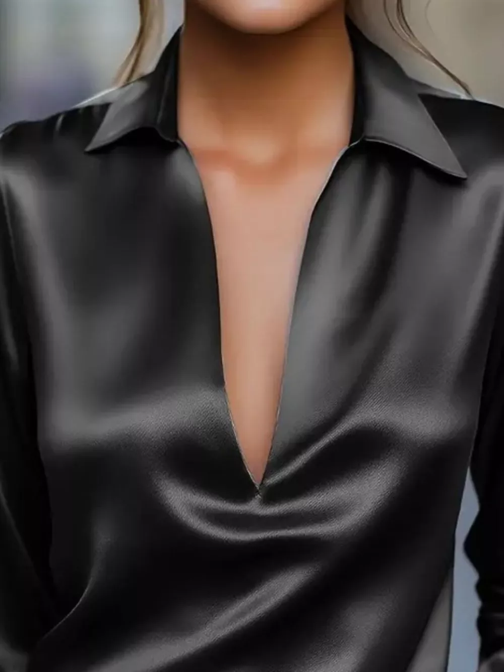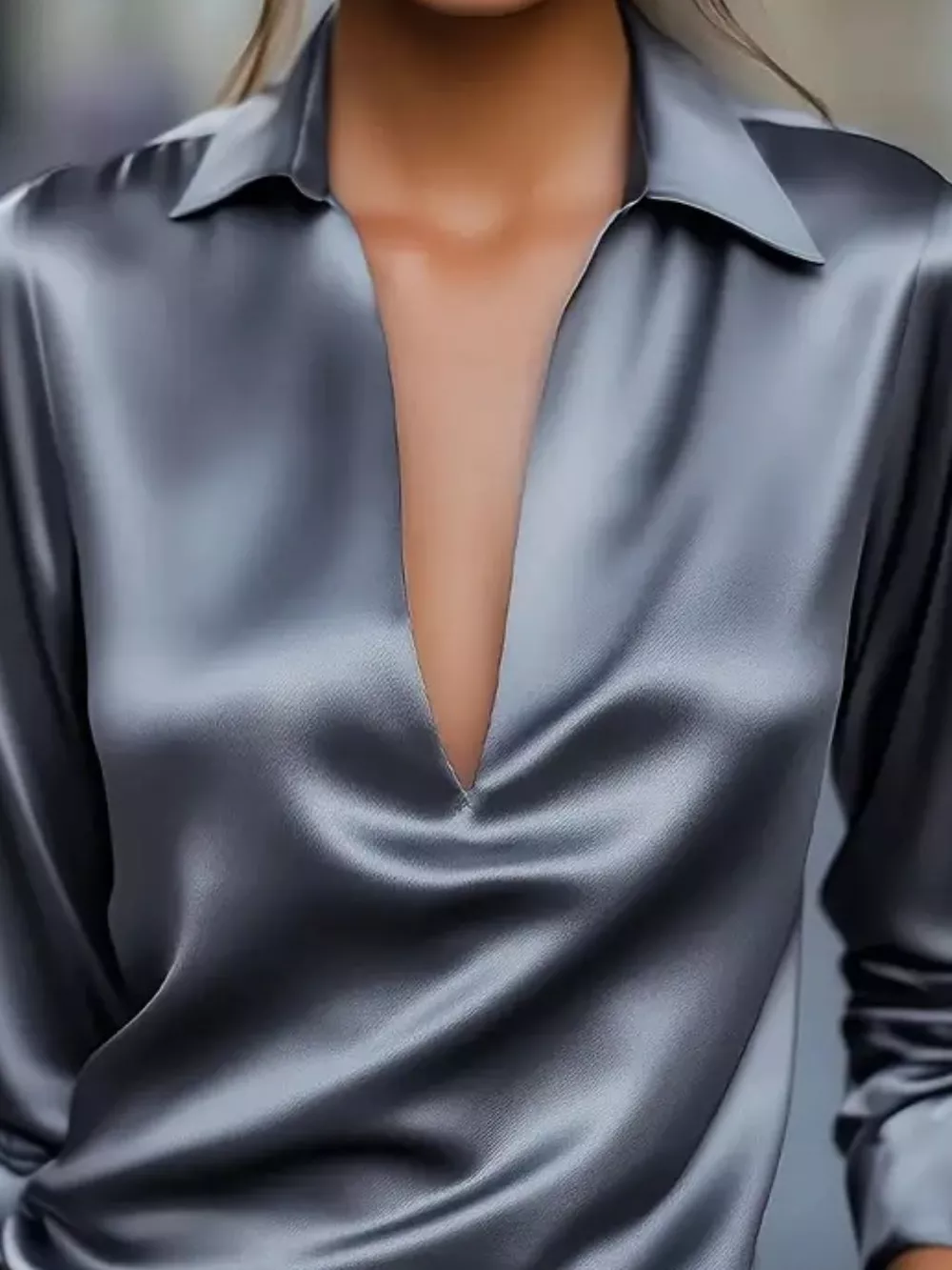 Satin Johnny Collar Long Sleeve Blouse
