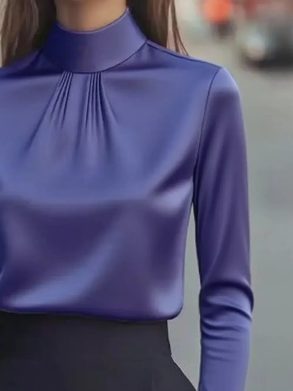 Mock Neck Long Sleeve Blouse with Pleated Detail