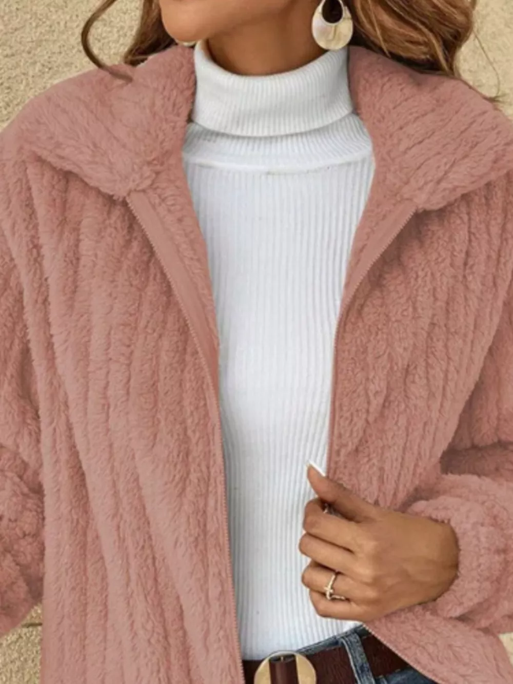 Full Size Zip-Up Long Sleeve Texture Jacket Plus Size
